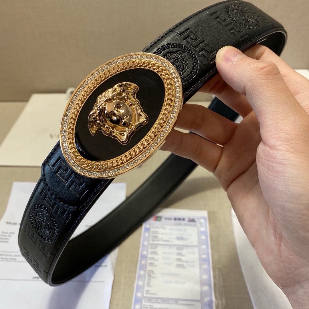 Versace Classic Circular Buckle Black Texture Belt Simple, Elegant, Exquisite, and Elegant