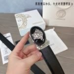 Versace Classic Circular Buckle Black Texture Belt Simple, Elegant, Exquisite, and Elegant