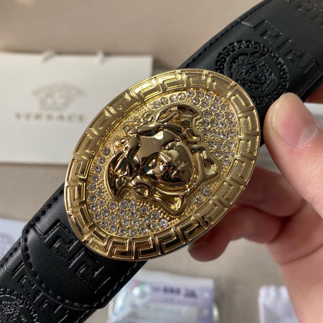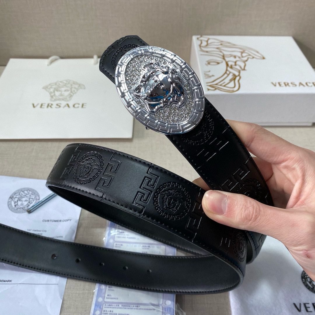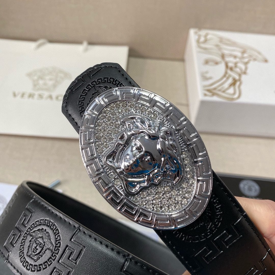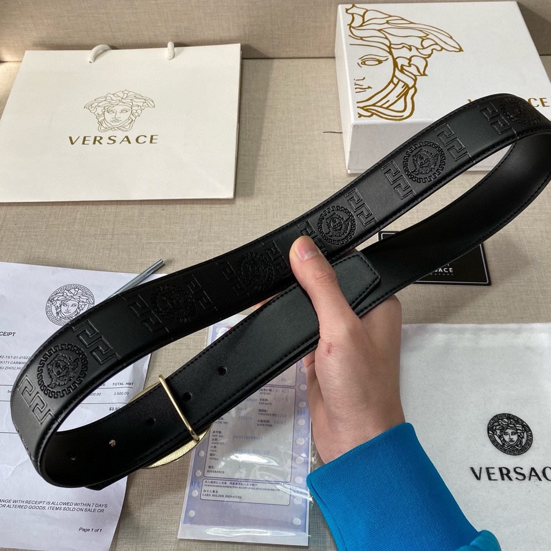 Versace Classic Circular Buckle Black Texture Belt Simple, Fashionable, Noble, Luxury