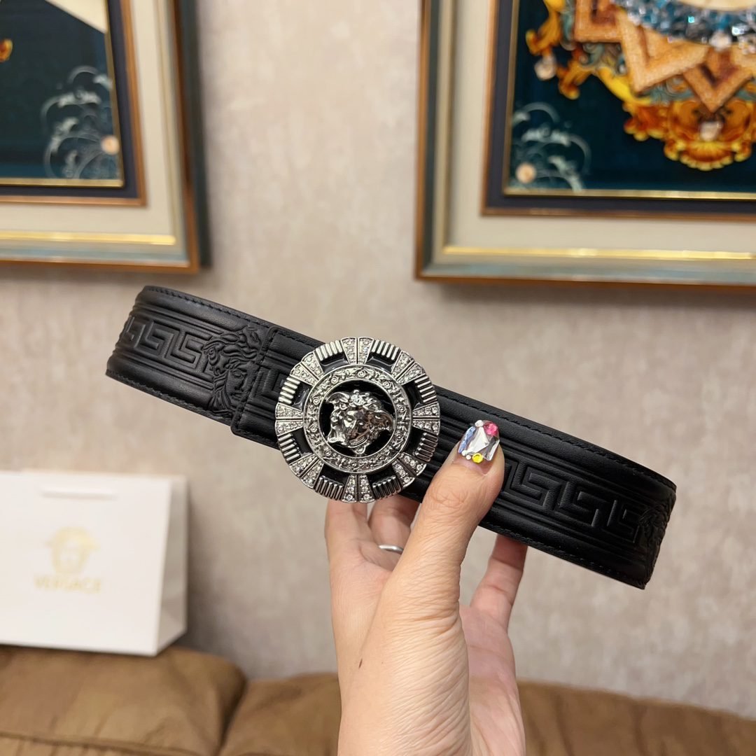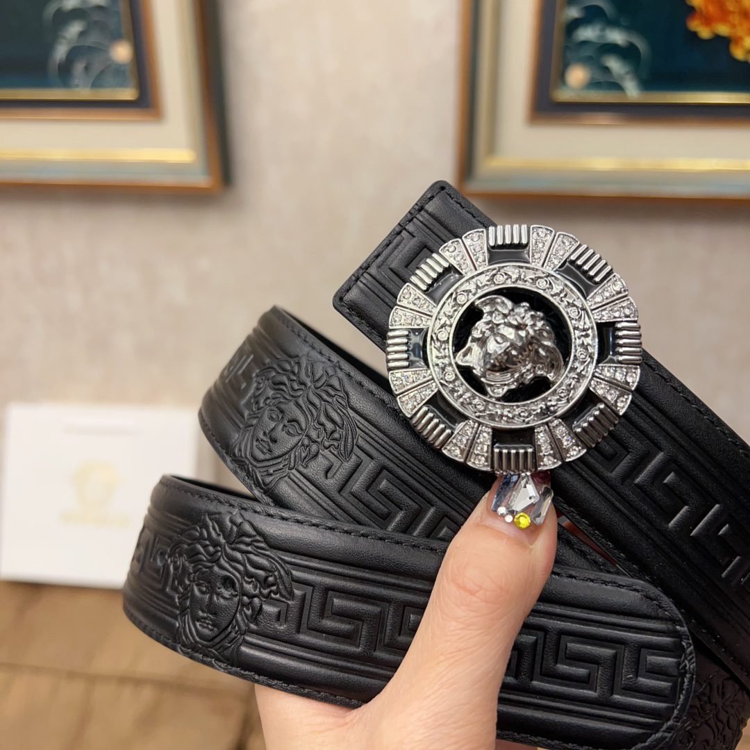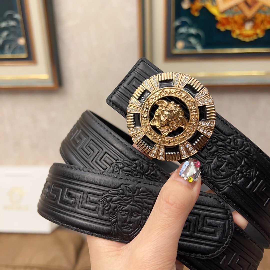 Versace Classic Circular Buckle Black Texture Belt Simple, Fashionable, Noble, and Elegant