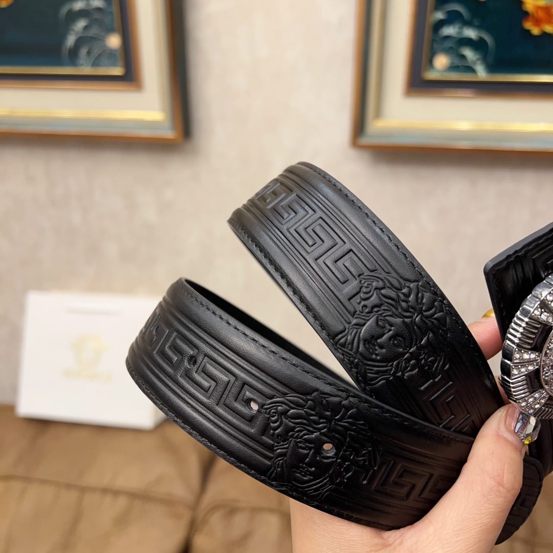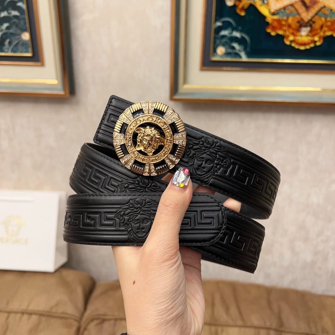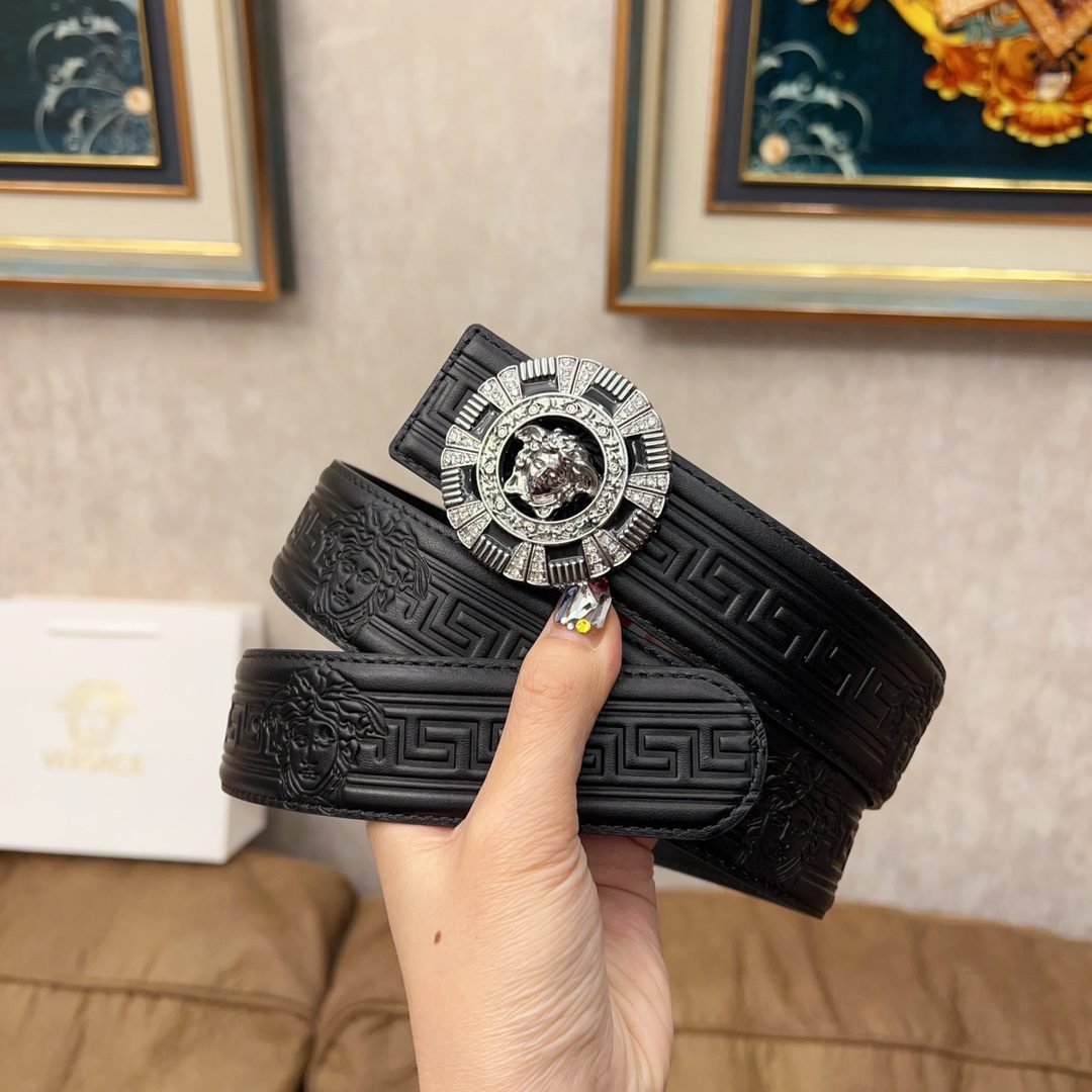 Versace Classic Circular Buckle Black Texture Belt Simple, Fashionable, Noble, and Elegant