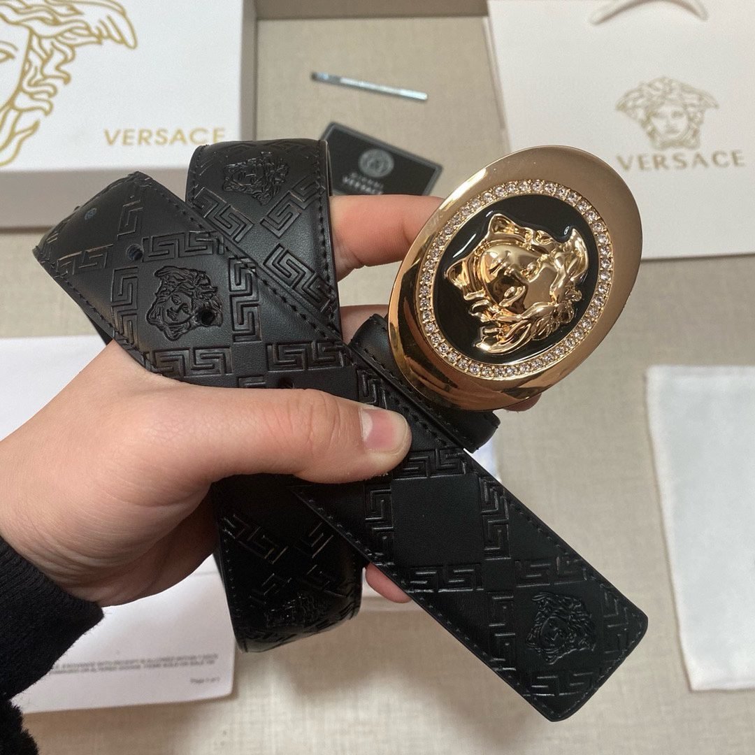 Home Belt VERSACE Belt Versace Classic Circular Buckle Black Texture Belt Simple, Fashionable, Noble, and Elegant