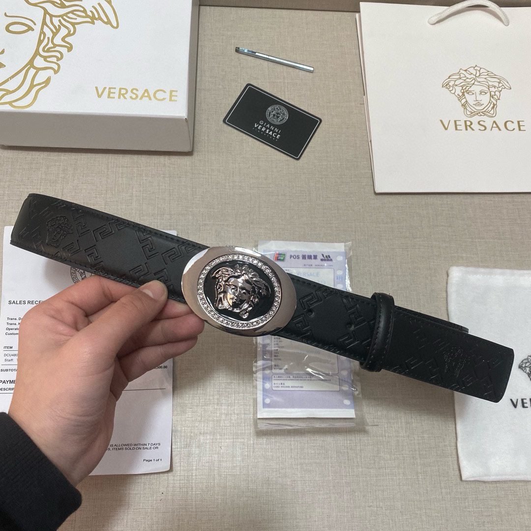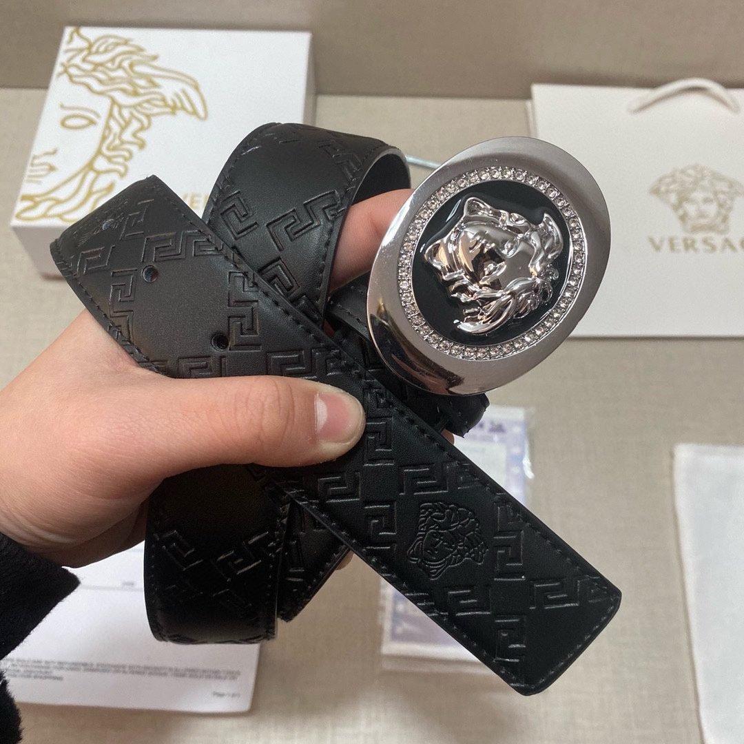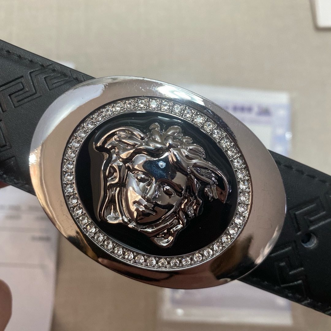 Versace Classic Circular Buckle Black Texture Belt Simple, Fashionable, Noble, and Elegant