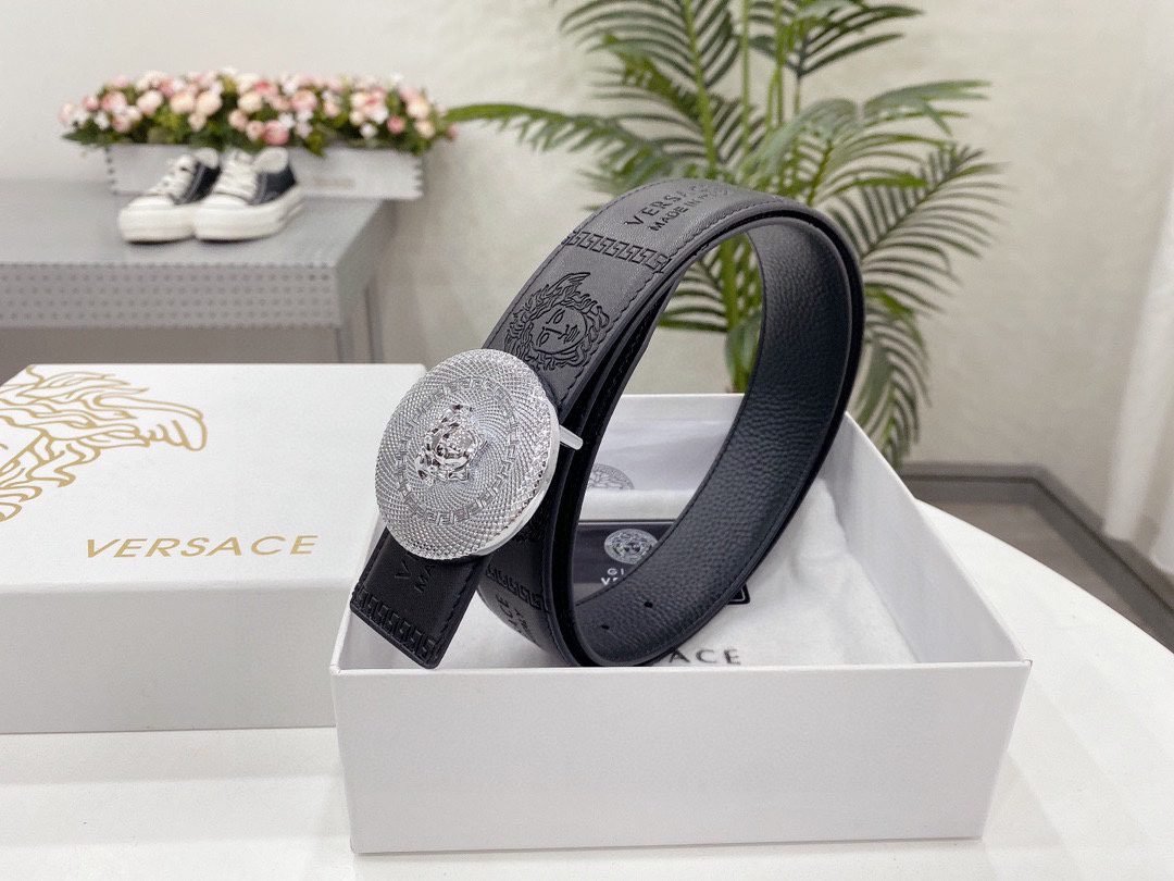 Home Belt VERSACE Belt Versace Classic Circular Buckle Black Texture Belt Simple, Fashionable, Noble, and Elegant
