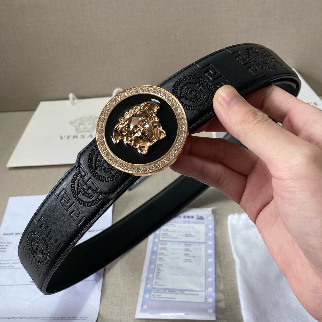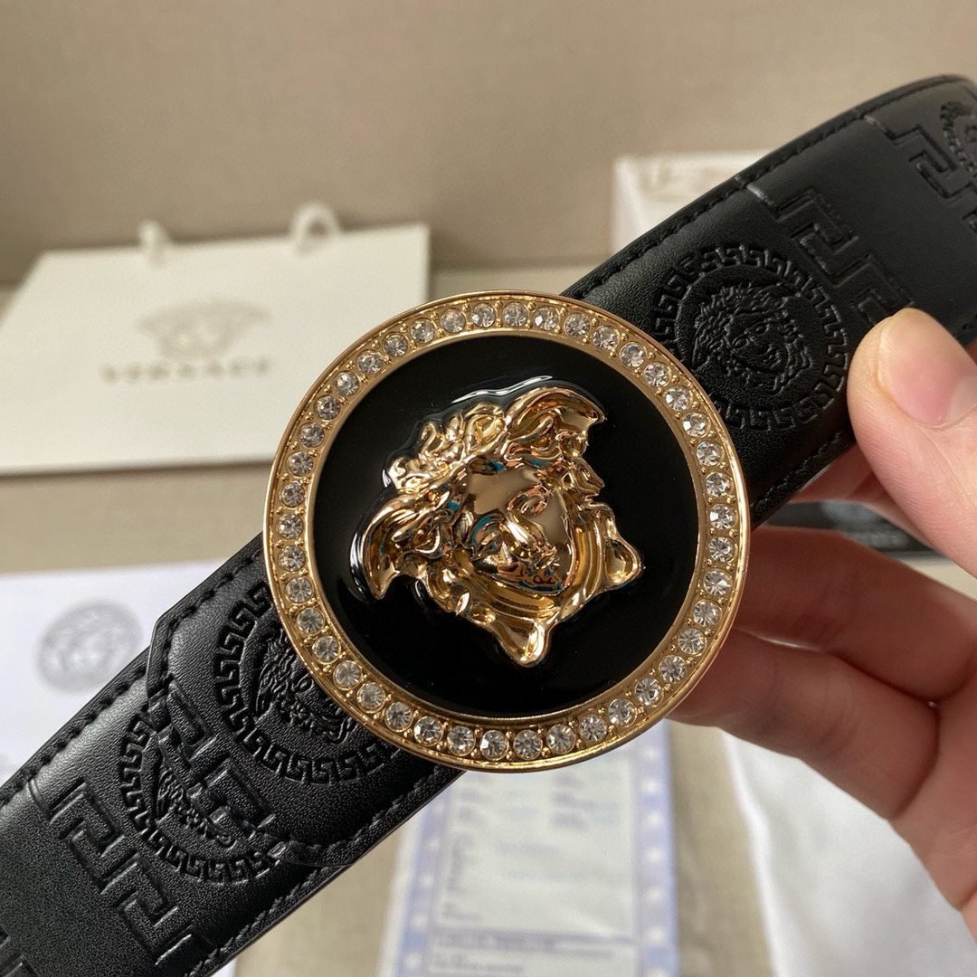 Home Belt VERSACE Belt Versace Classic Circular Buckle Black Texture Belt Simple, Fashionable, Noble, and Elegant