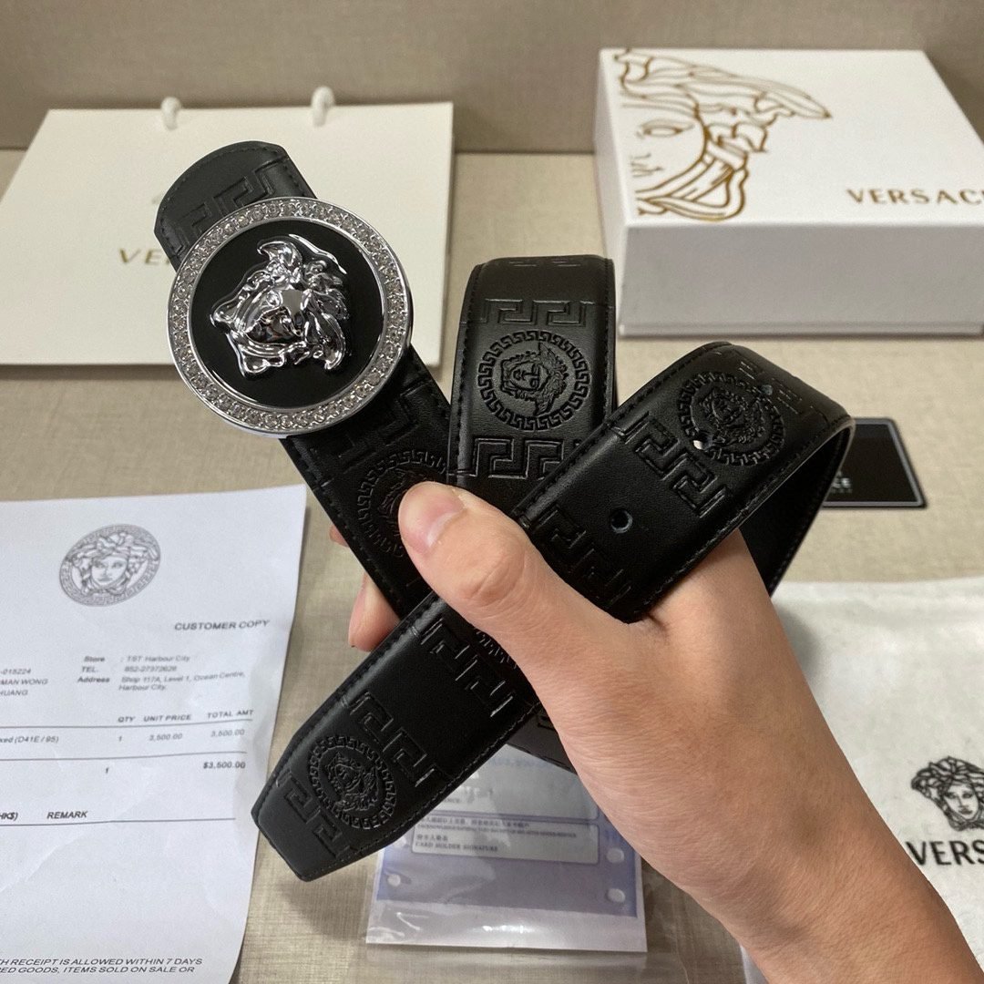 Versace Classic Circular Buckle Black Texture Belt Simple, Fashionable, Noble, Luxury