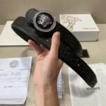 Versace Classic Circular Buckle Black Texture Belt Simple, Fashionable, Noble, Luxury