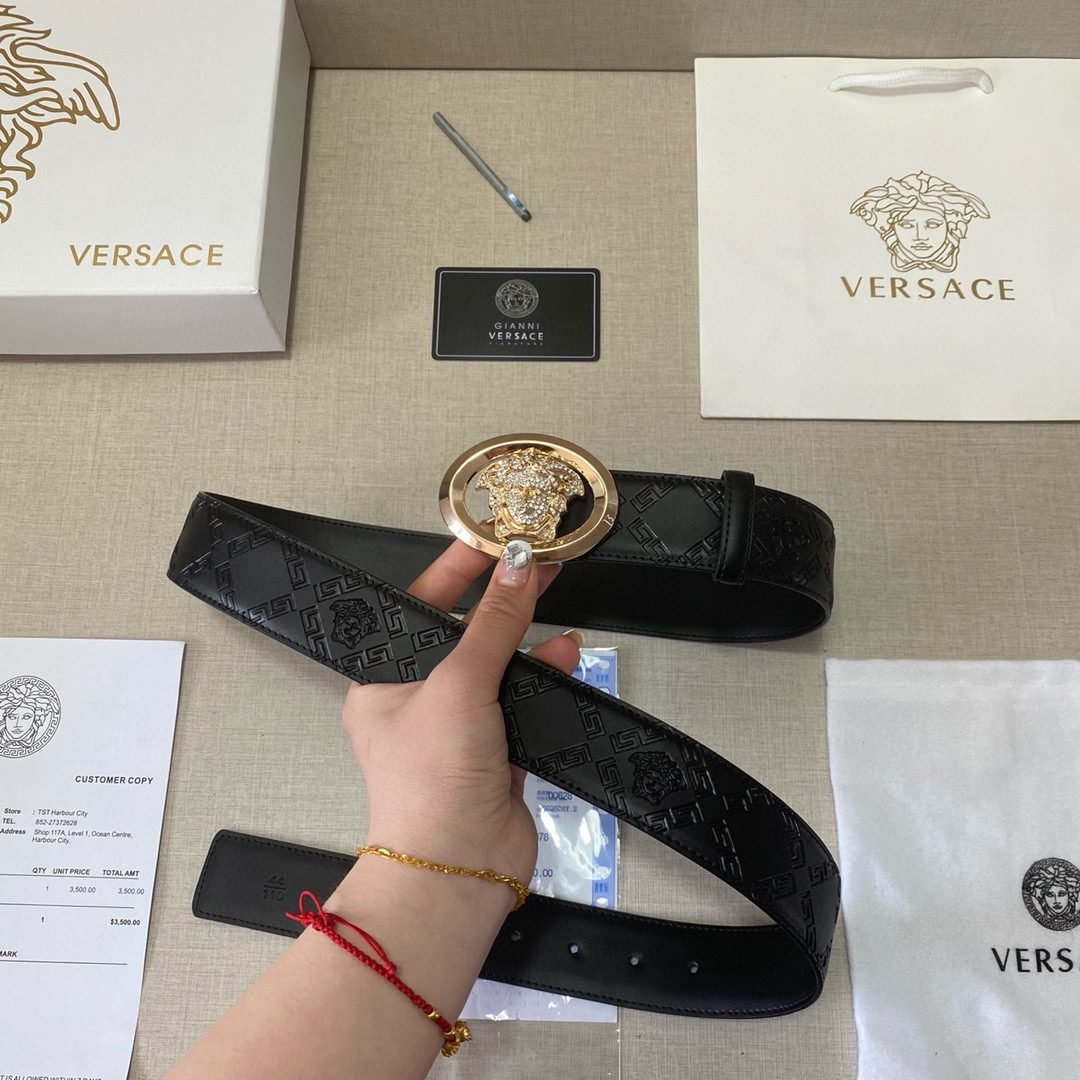 2. Classic design: The belt buckle is engraved with the “VERACE” logo, showcasing the brand’s unique charm.