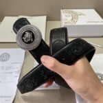 Versace Classic Medusa Relief Ring Buckle Black Texture Belt Simple Fashion Noble Luxury $210.00 Original price was: $210.00.$66.69Current price is: $66.69.