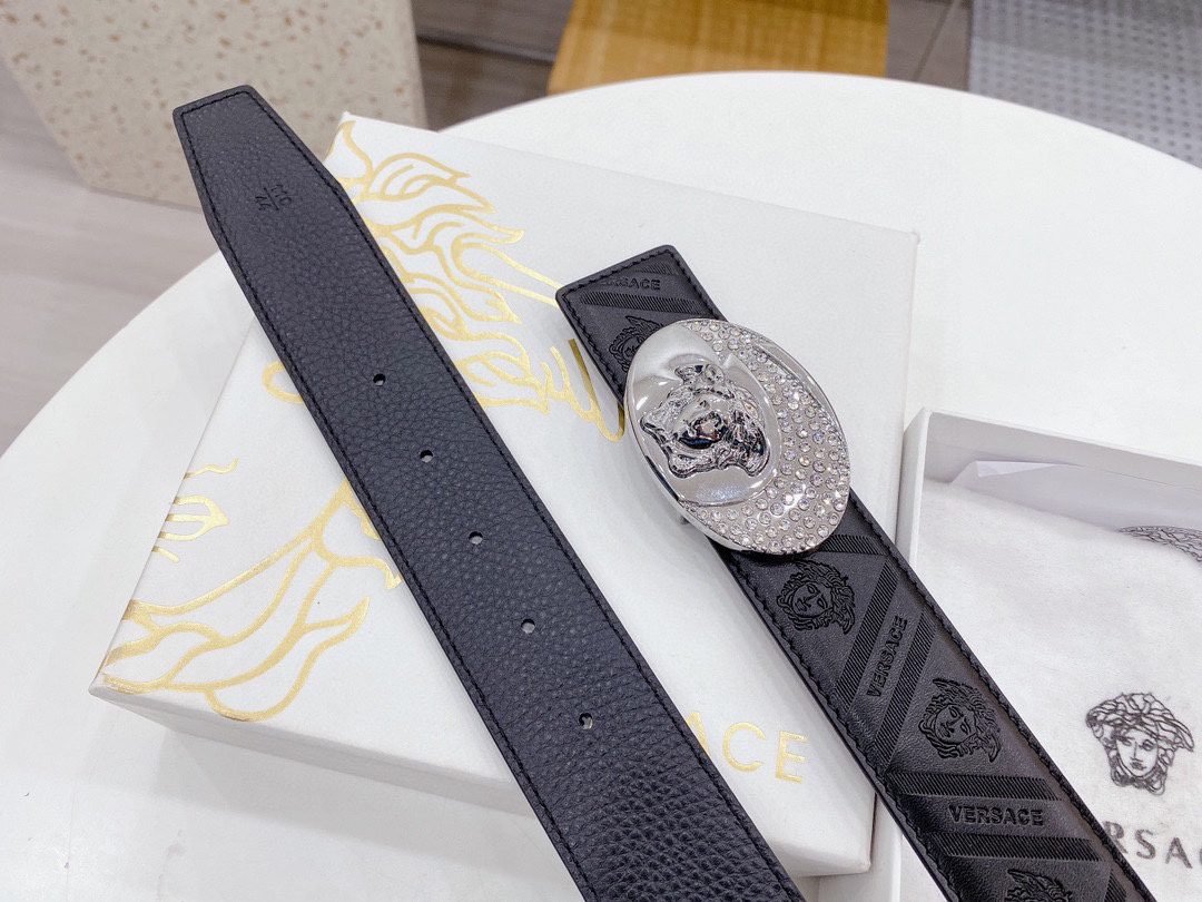 Home Belt VERSACE Belt Versace Classic Circular Buckle Black Texture Belt Simple, Grand, Noble, and Elegant