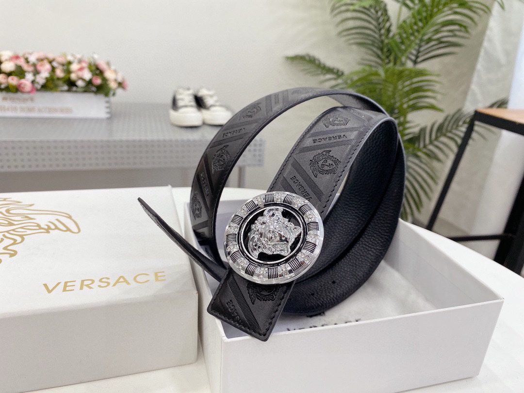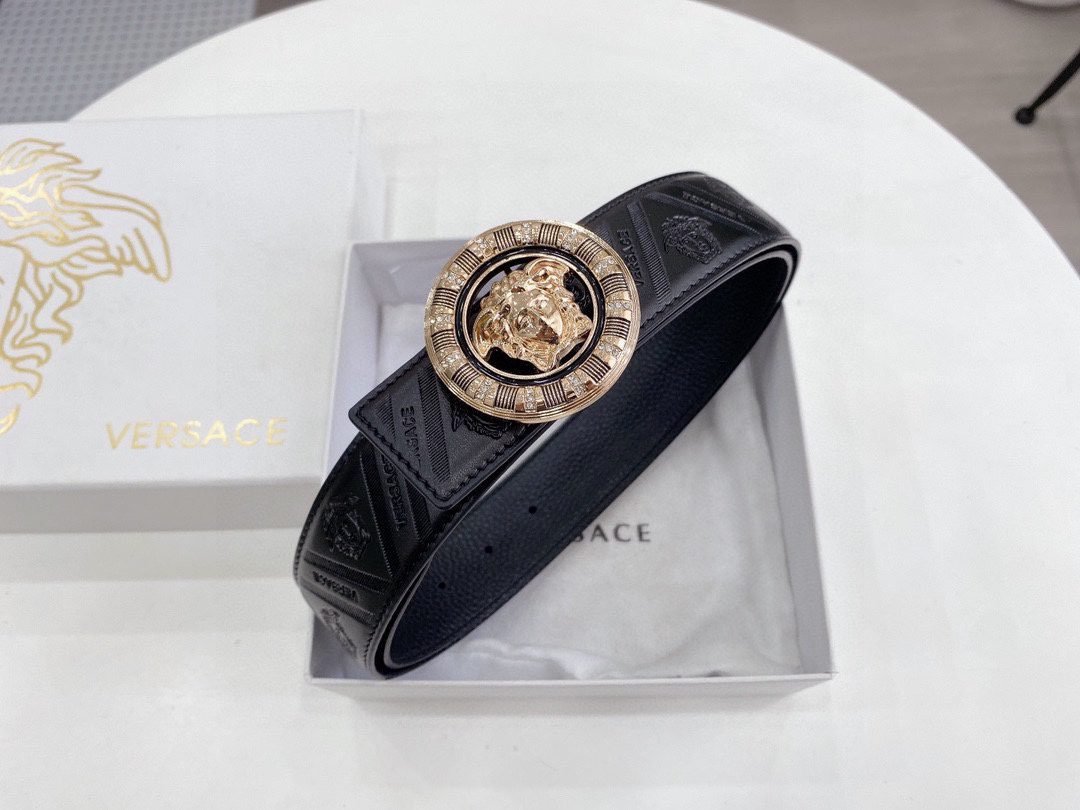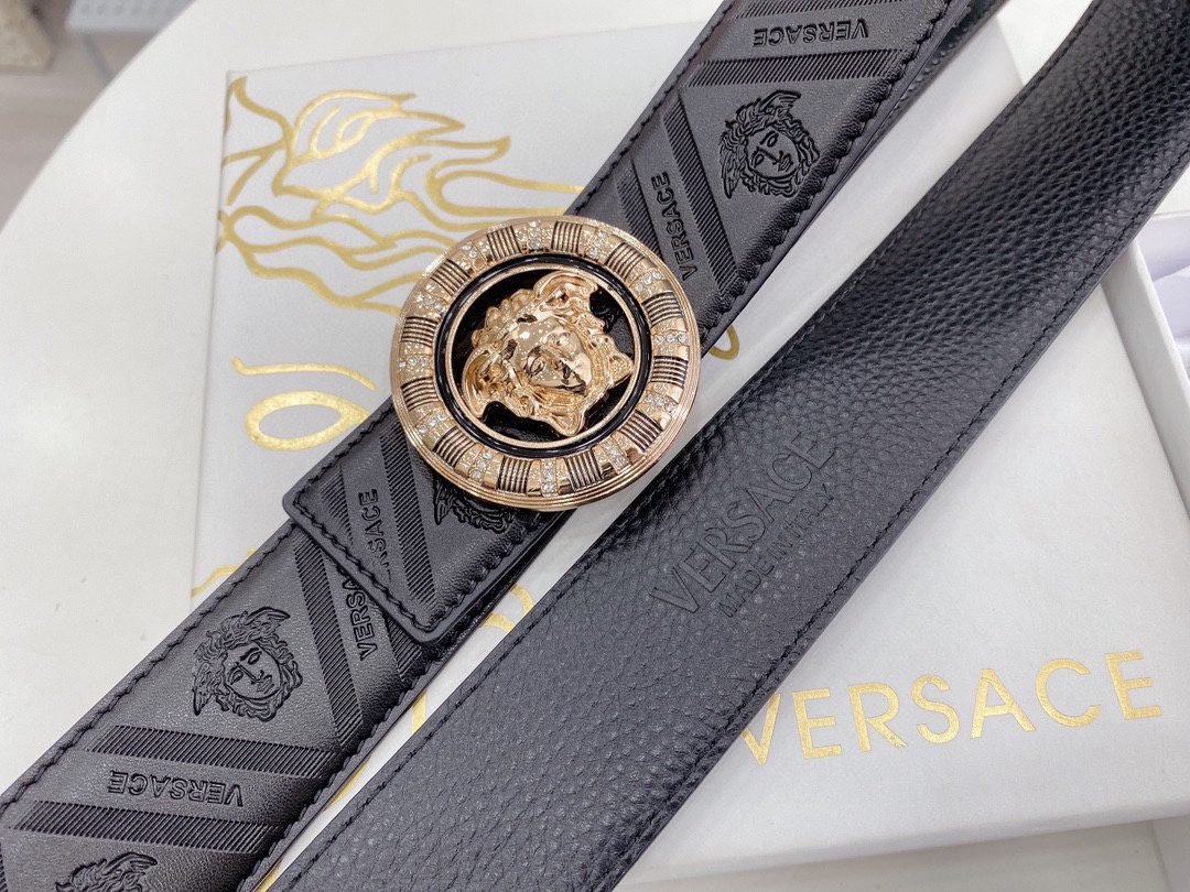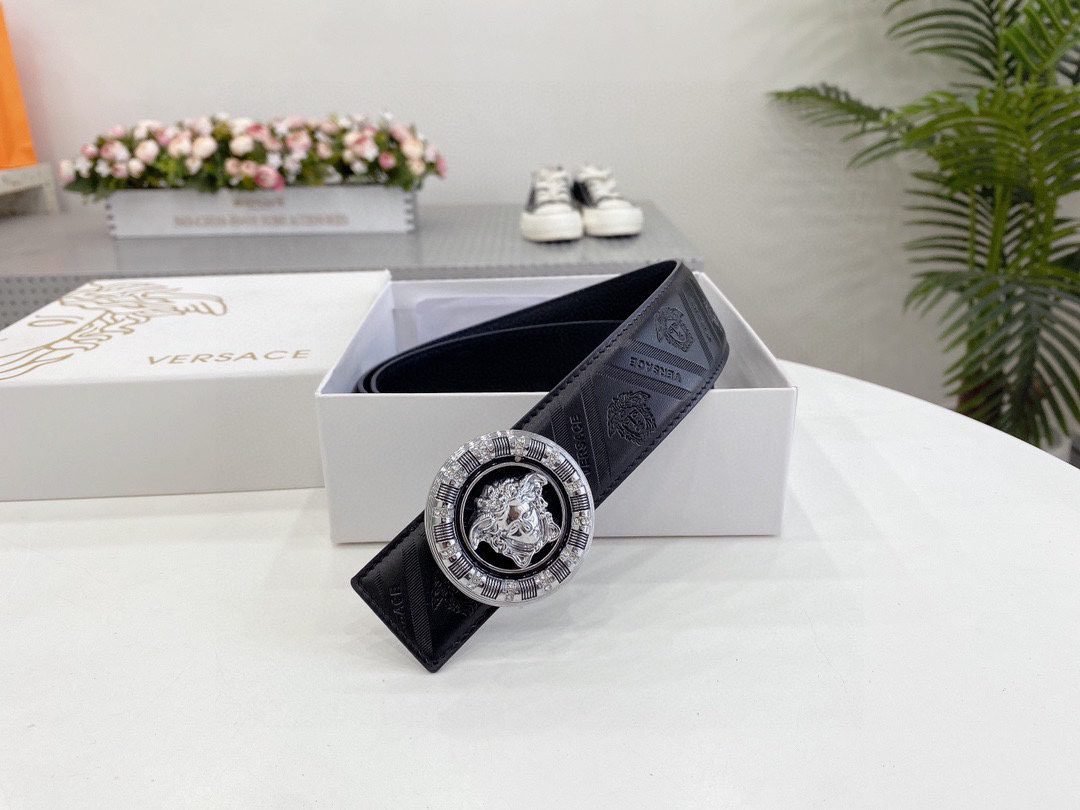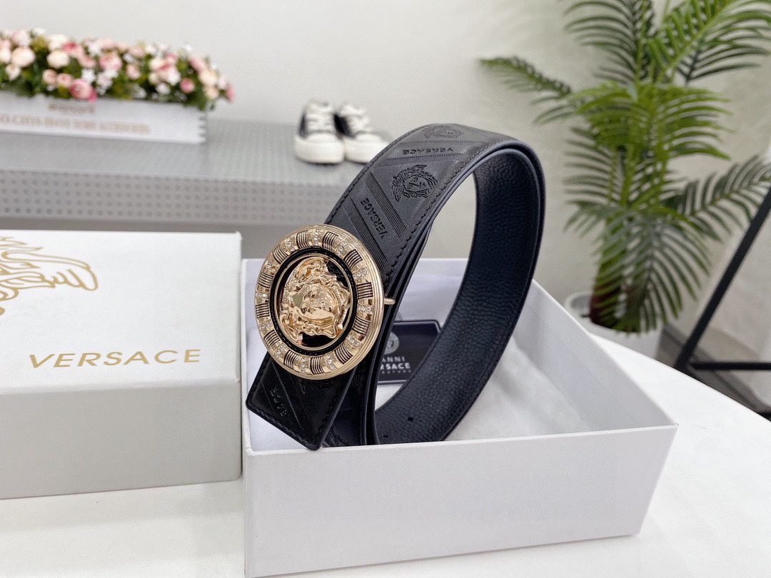 Home Belt VERSACE Belt Versace Classic Circular Buckle Black Texture Belt Simple, Grand, Noble, and Elegant
