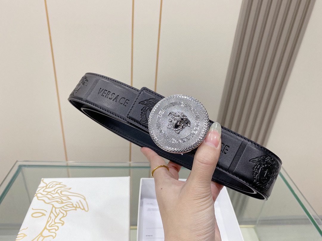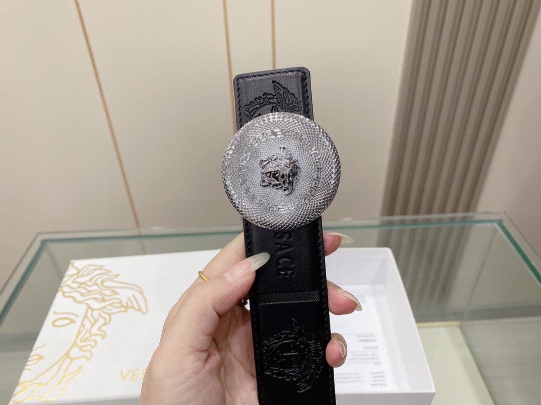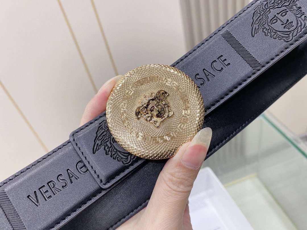 Home Belt VERSACE Belt Versace Classic Circular Buckle Black Textured Belt Simple and Elegant, Low key Luxury