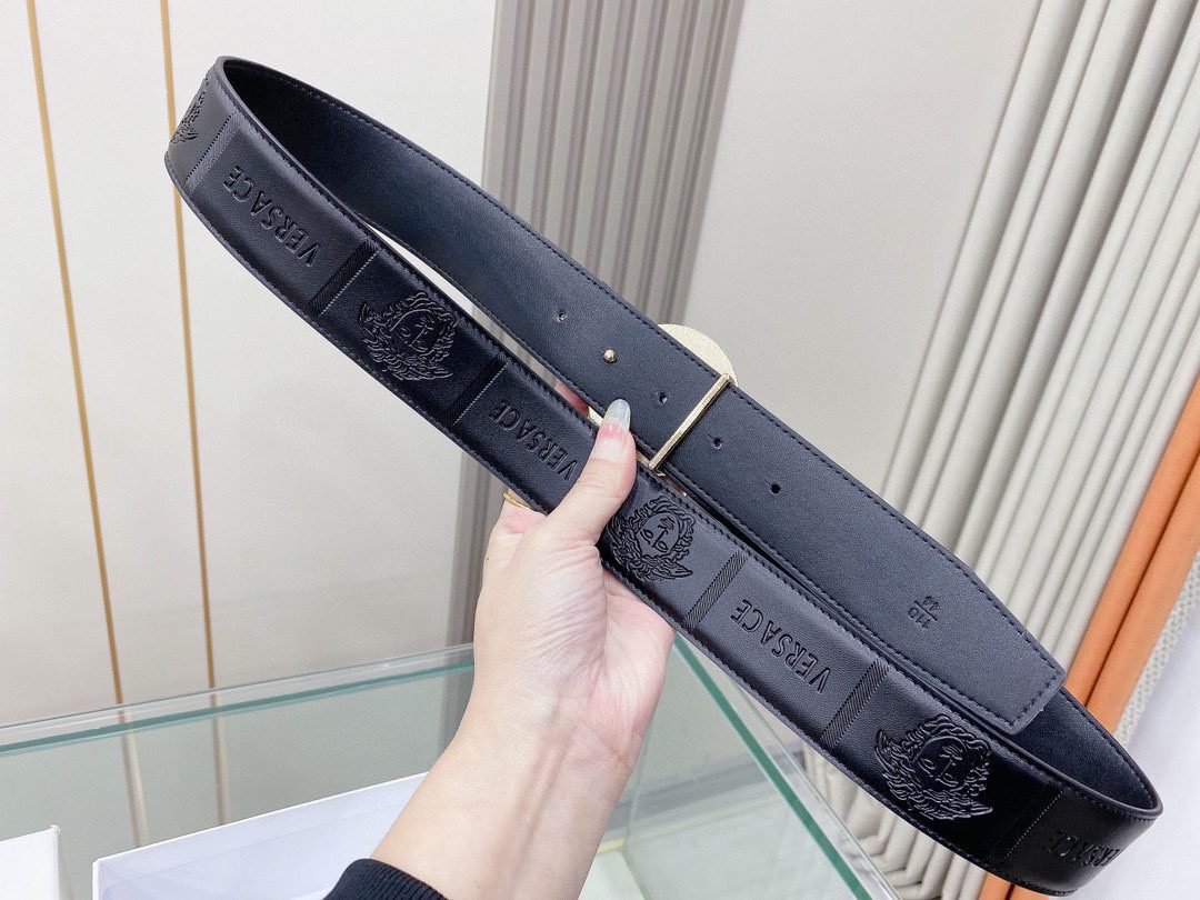 Versace classic Medusa embossed black textured belt, simple, atmospheric, low-key, luxurious $210.00 Original price was: $210.00.$66.69Current price is: $66.69.