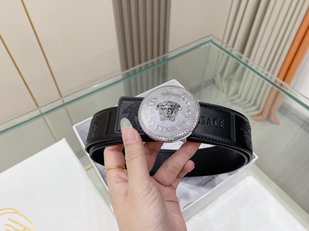 Home Belt VERSACE Belt Versace Classic Circular Buckle Black Textured Belt Simple and Elegant, Low key Luxury