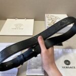 Versace Classic Circular Buckle Black Texture Belt Simple, Elegant, Exquisite, and Elegant
