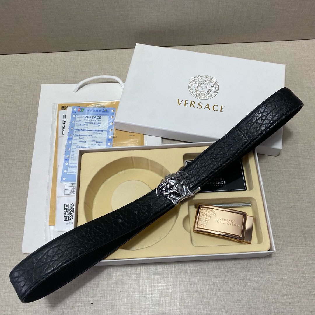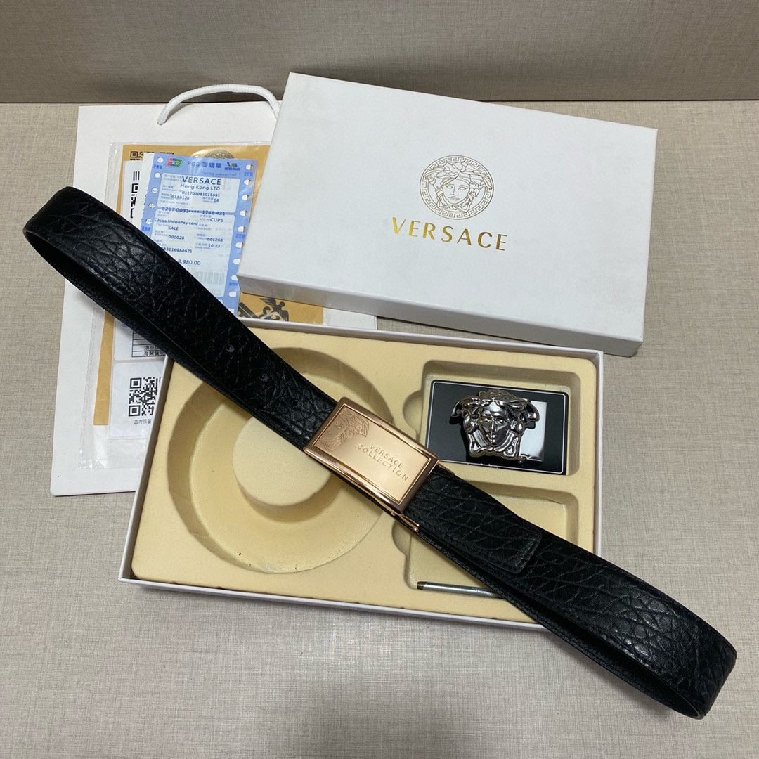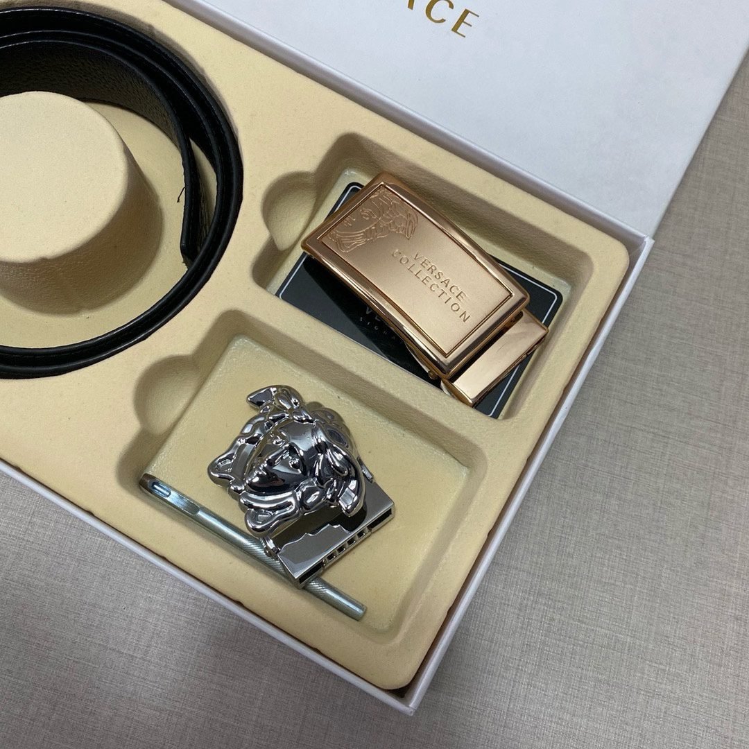 Home Belt VERSACE Belt Versace Classic Double Buckle Belt Gift Box Set is simple, atmospheric, low-key, and luxurious