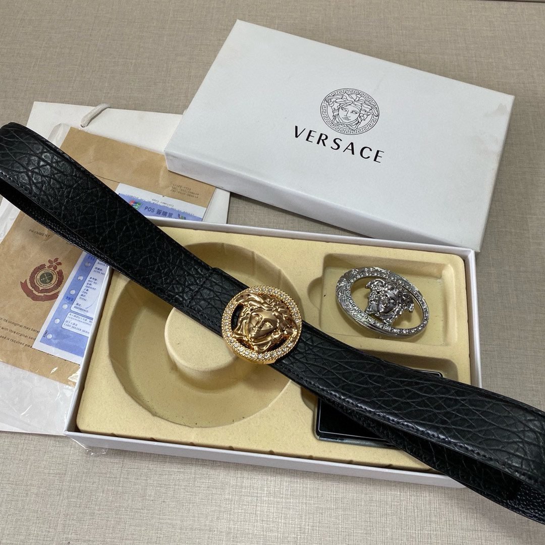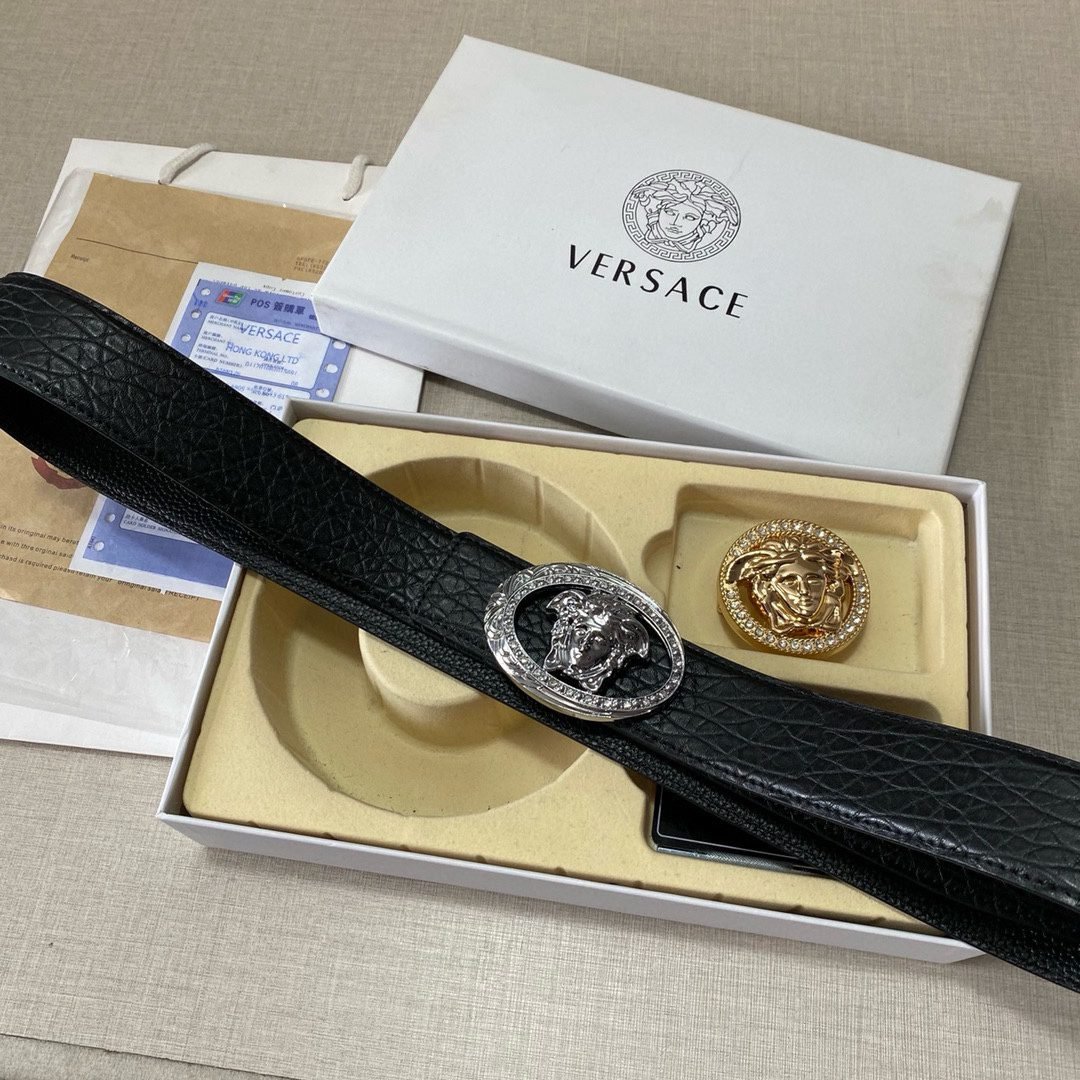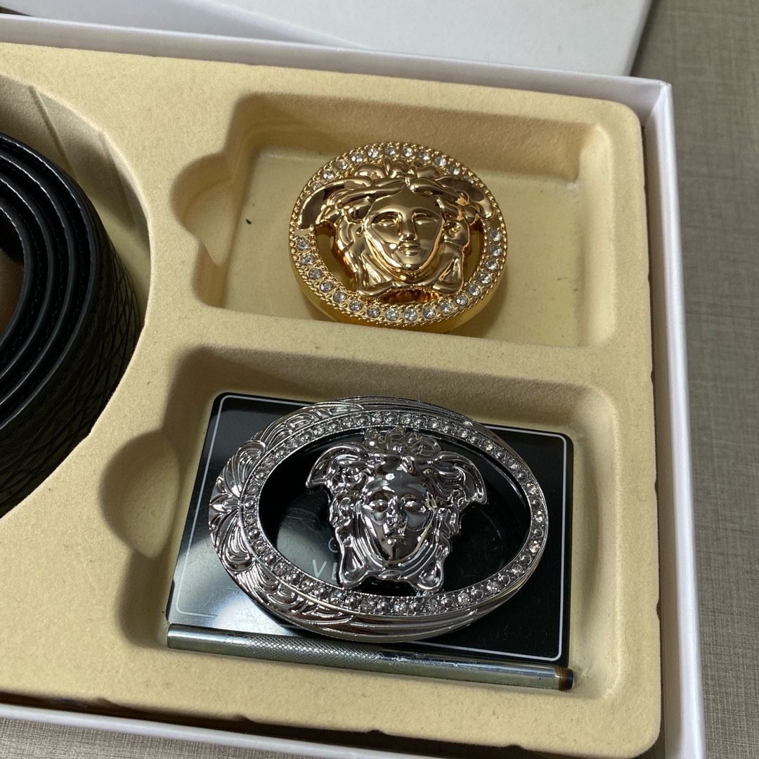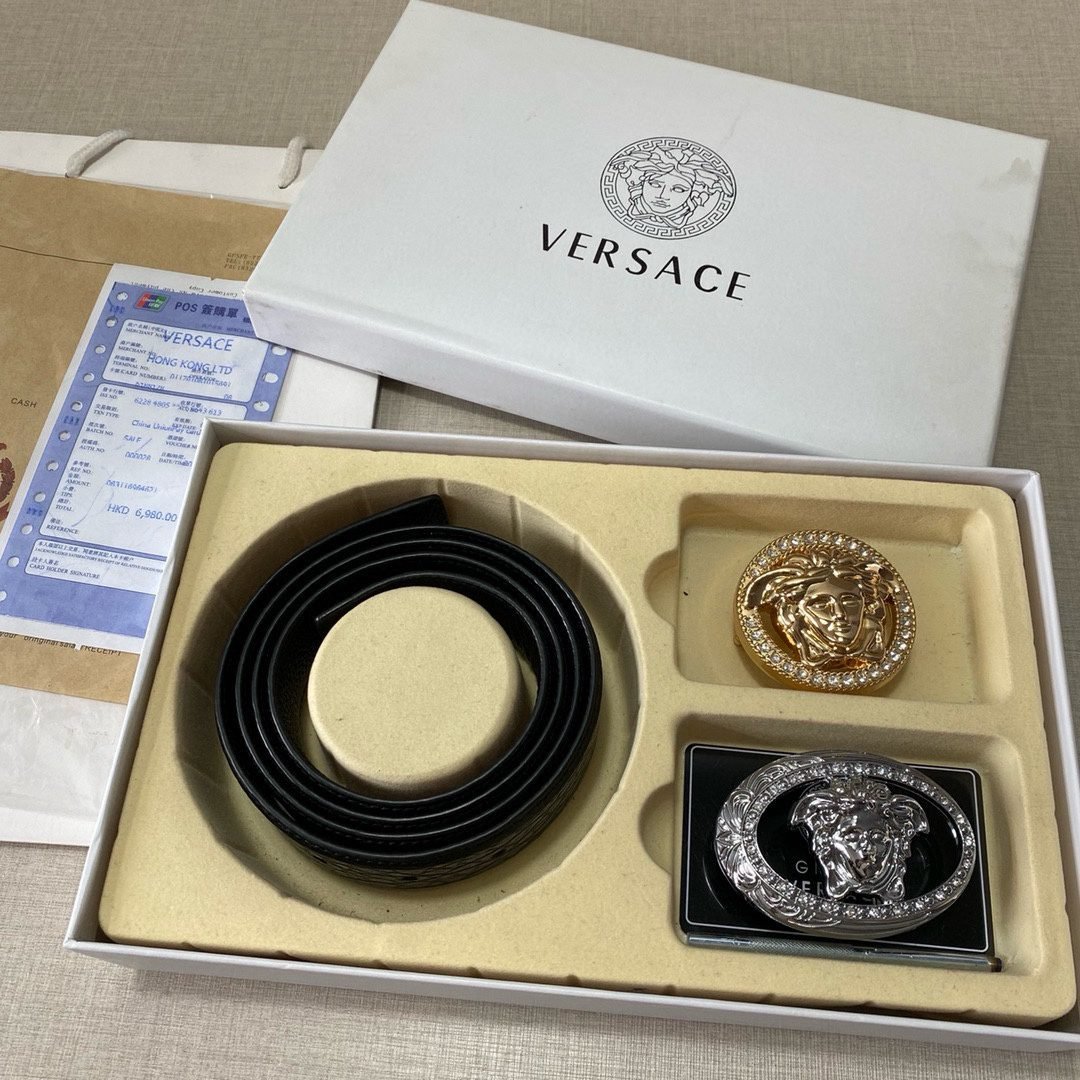 Home Belt VERSACE Belt Versace Classic Double Button Belt Gift Box Set, High end Fashion, Noble and Elegant