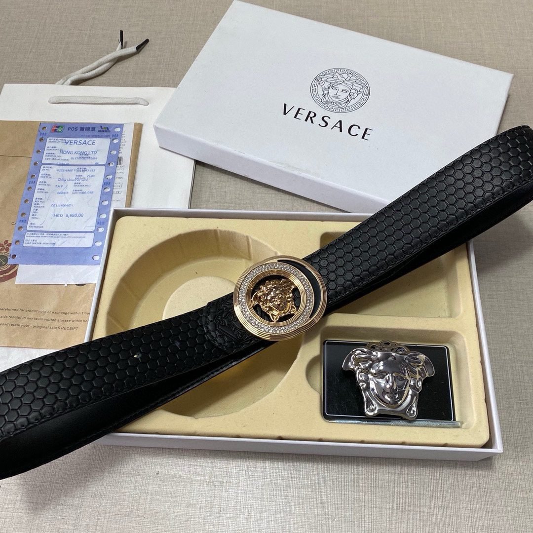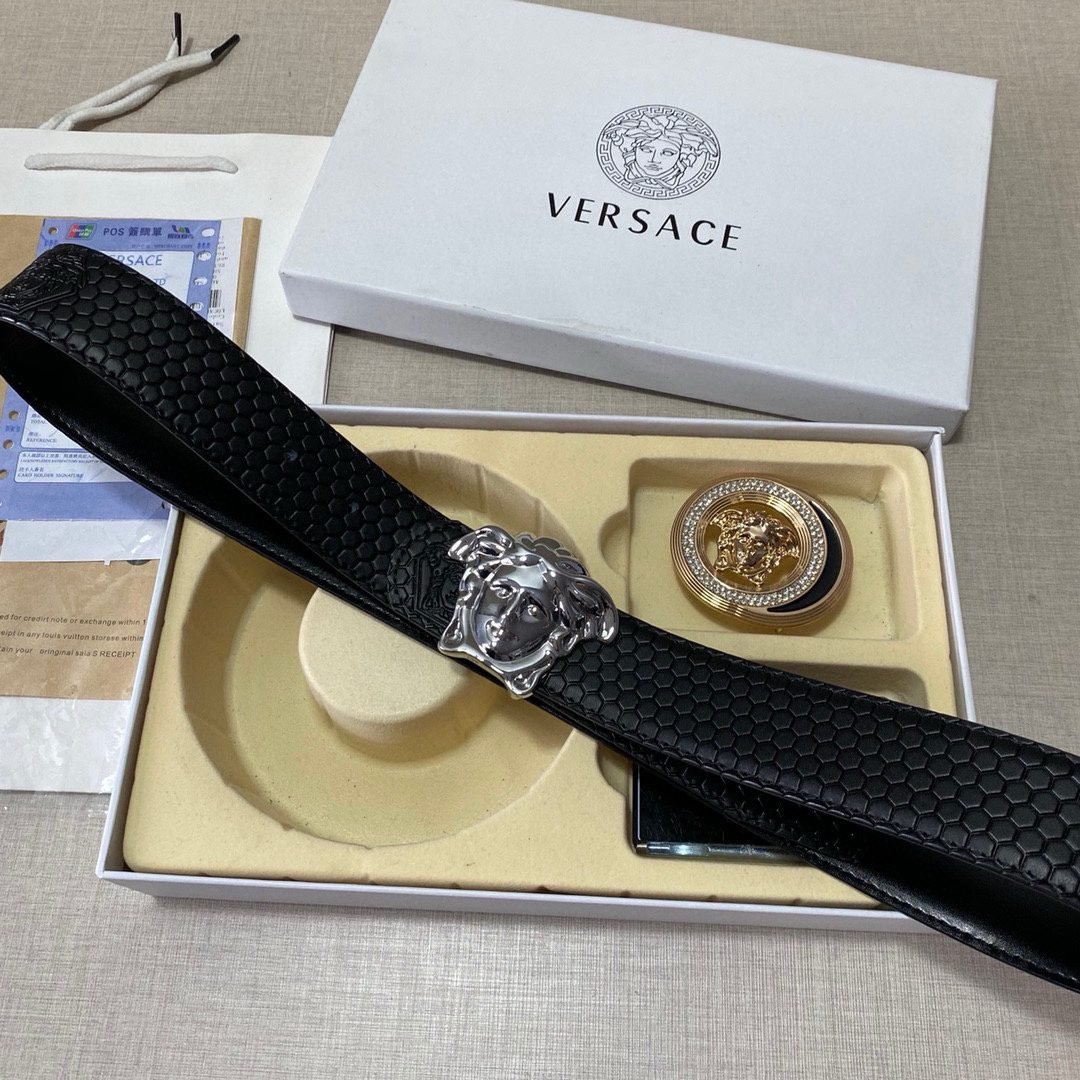 Home Belt VERSACE Belt Versace Classic Double Button Belt Gift Box Set, High end Fashion, Noble and Elegant