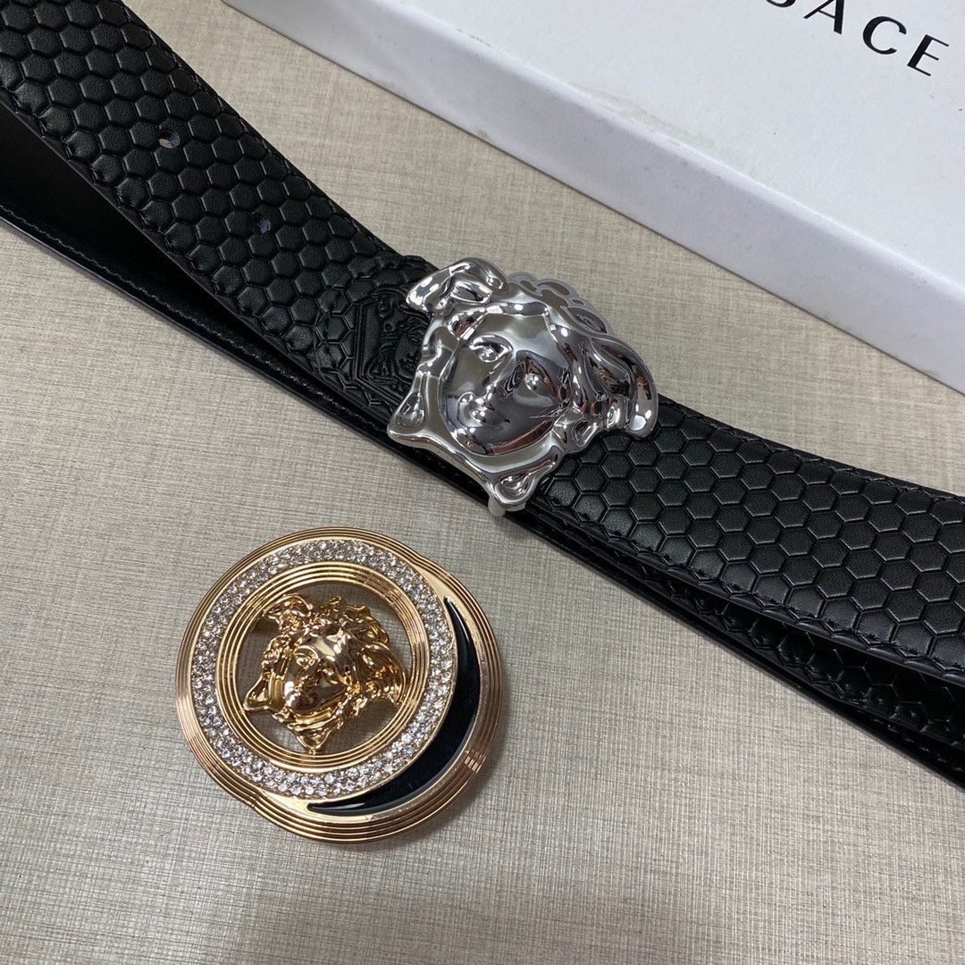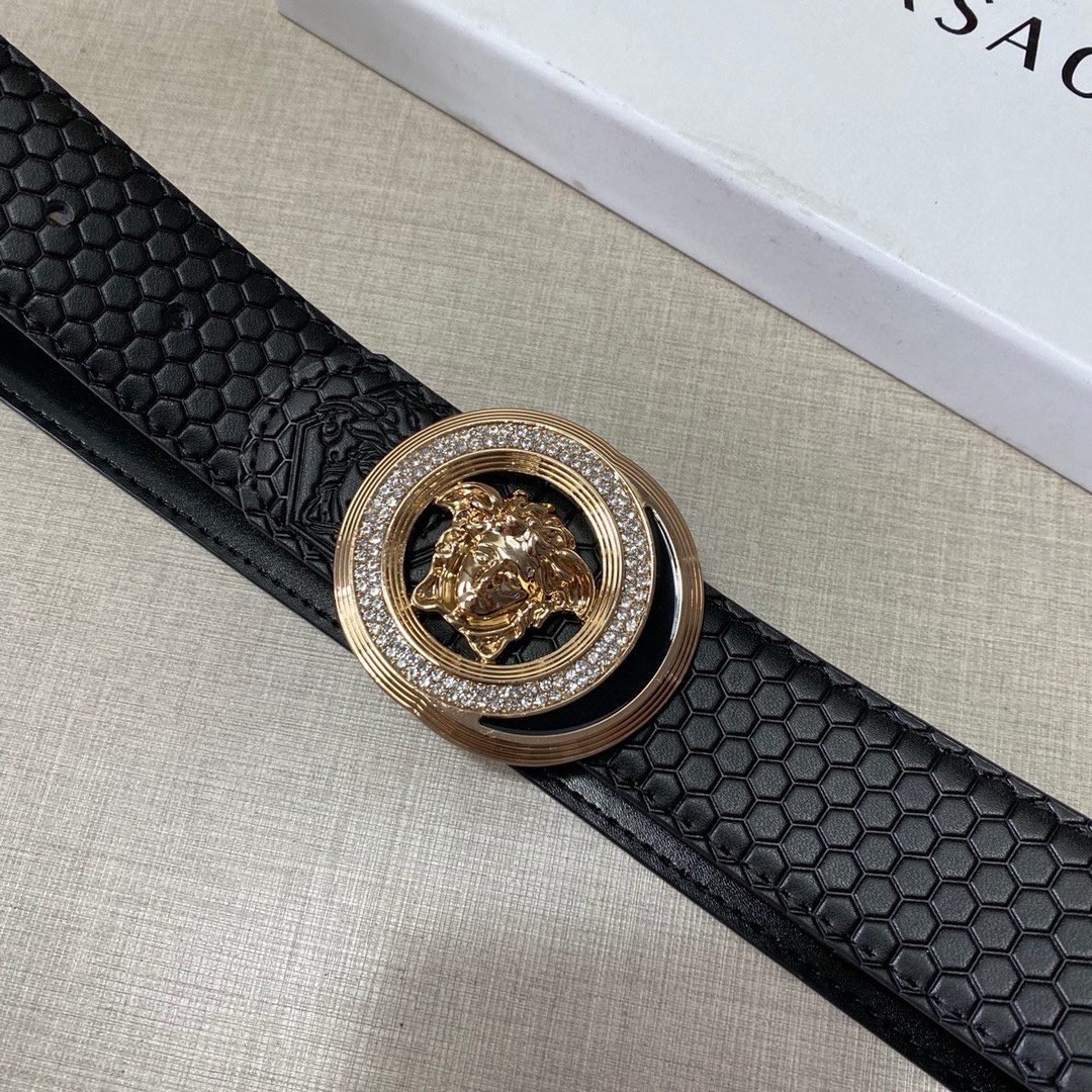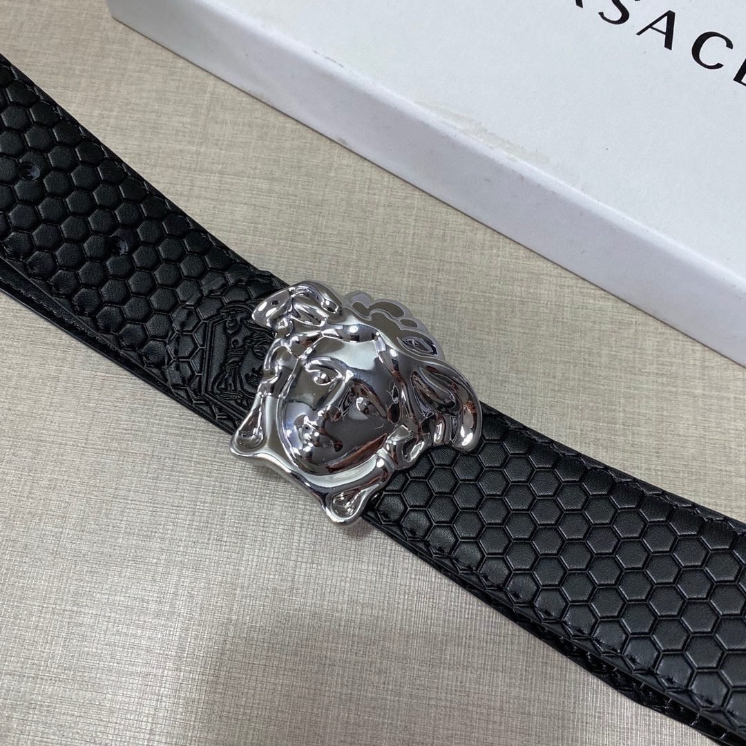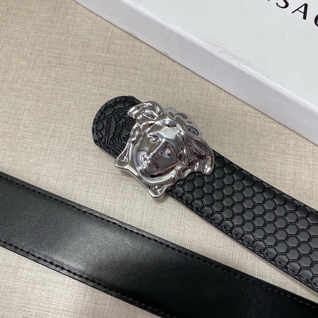 Versace Classic Medusa Relief Ring Buckle Black Texture Belt Classic Fashion Exquisite Elegance