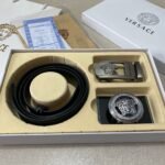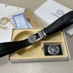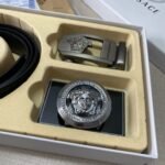 Versace Classic Round Buckle Belt Gift Box Set, with the brand’s consistent exquisite craftsmanship and excellent quality, creates a unique fashion accessory. The gift box includes a carefully selected black belt, paired with gray and silver fasteners, showcasing the brand’s ultimate pursuit of details. The belt is made of top grade leather material, with a soft and delicate touch, durable and wear-resistant, while also combining fashion and practicality.