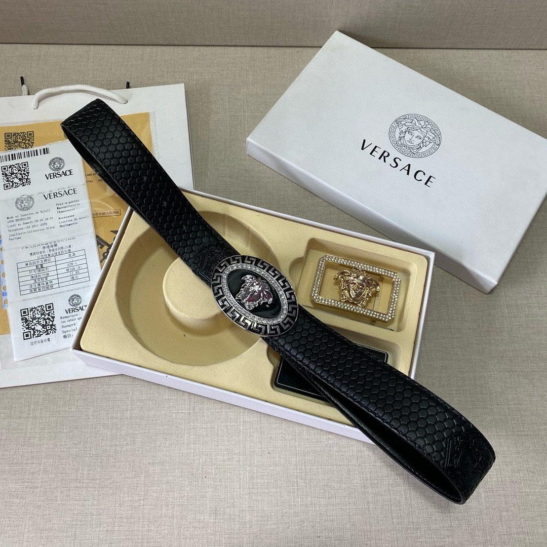 Home Belt VERSACE Belt Versace Classic Double Button Belt Gift Box Set, High end Fashion, Noble and Elegant