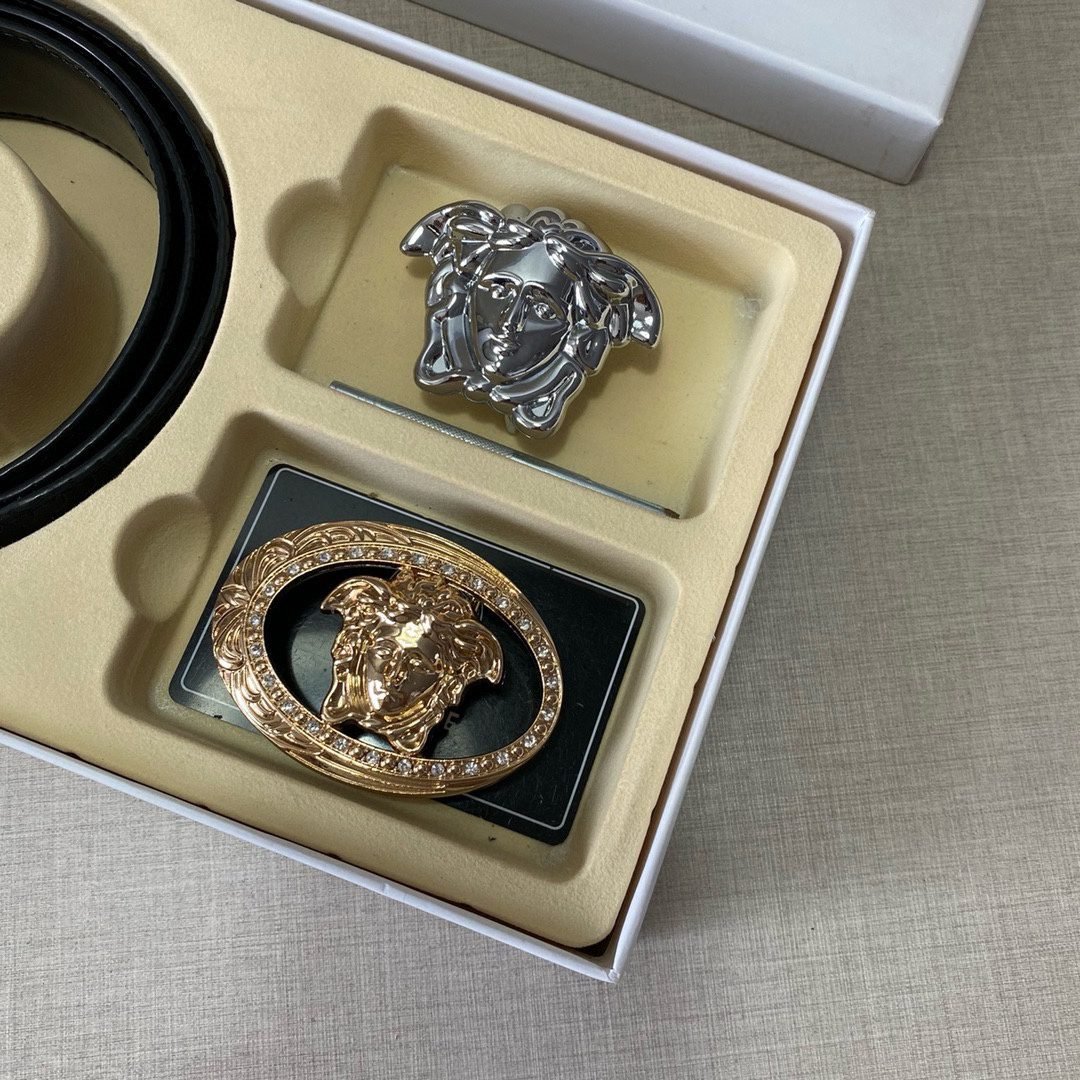 Home Belt VERSACE Belt Versace Classic Double Button Belt Gift Box Set, High end Fashion, Noble Luxury