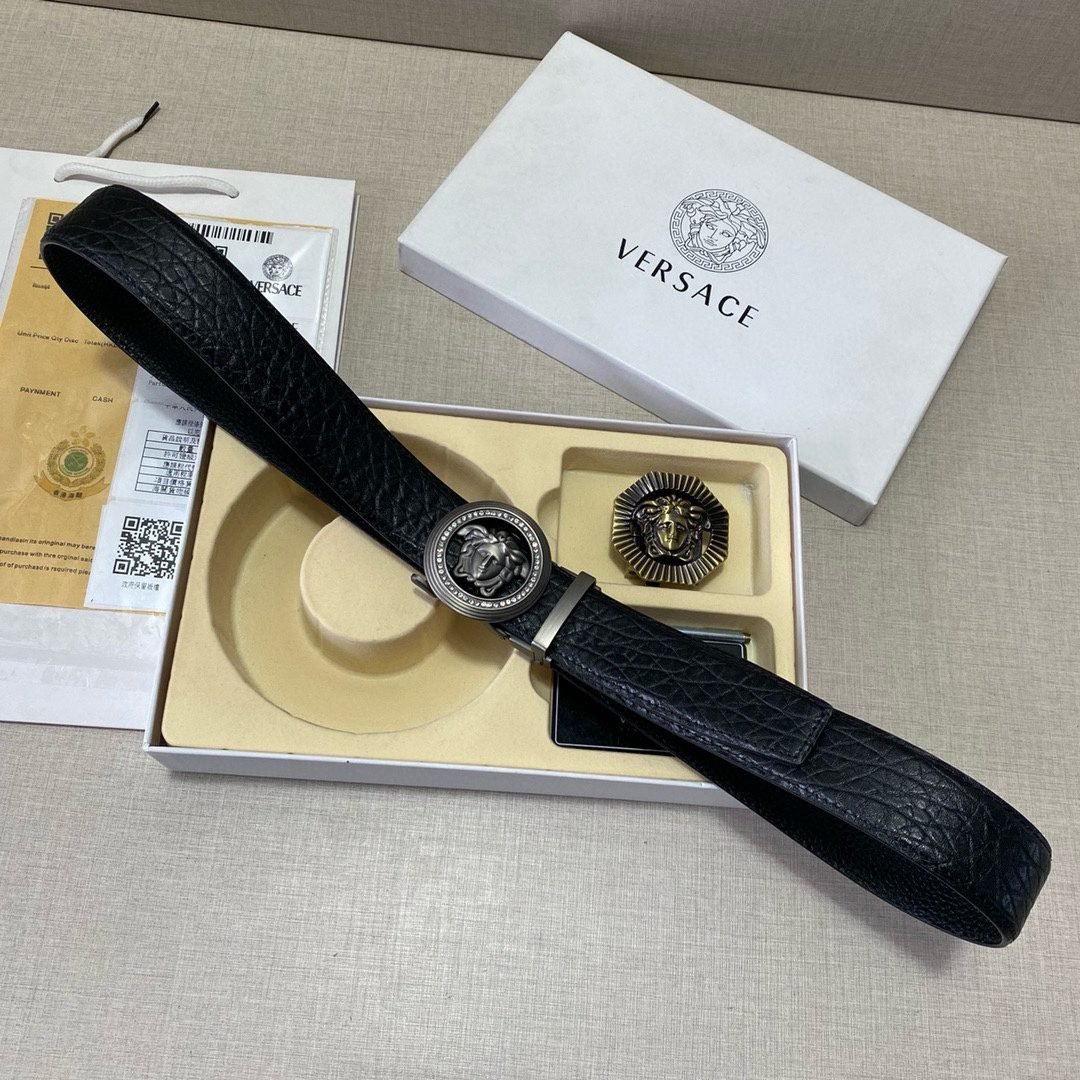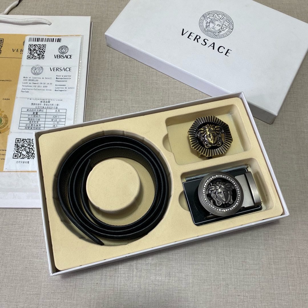 Versace Classic Double Button Round Buckle Belt Gift Box Set, High end Fashion, Noble and Elegant