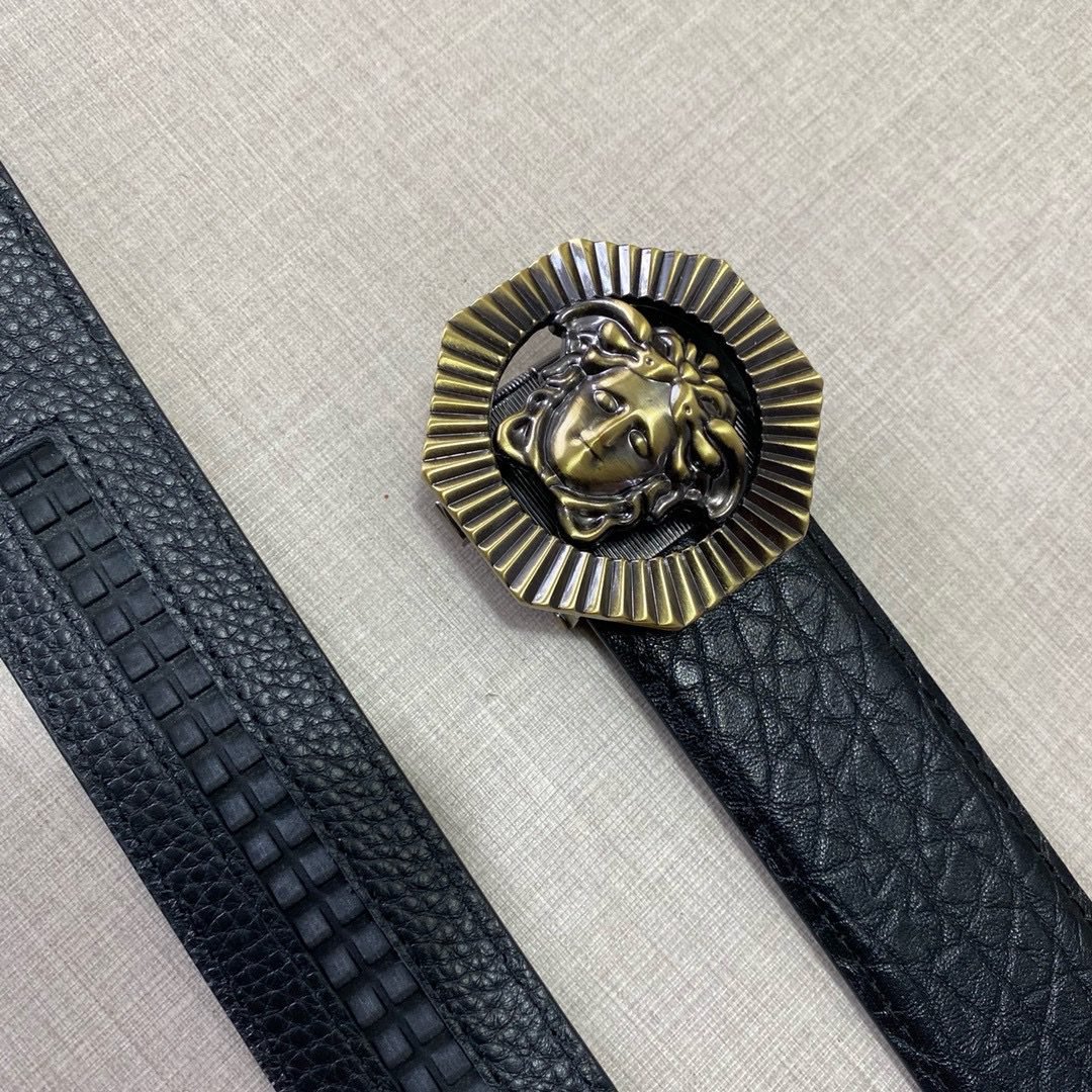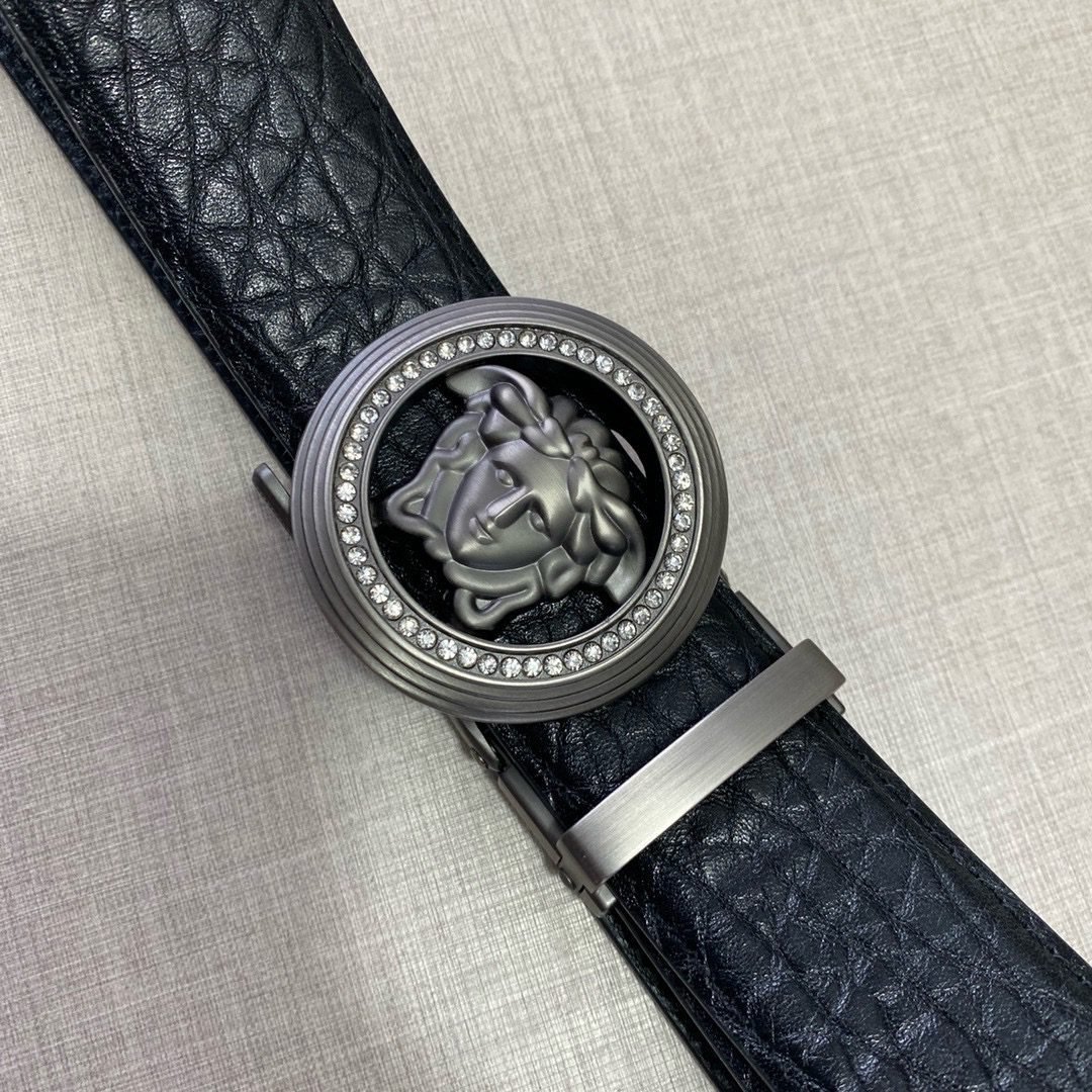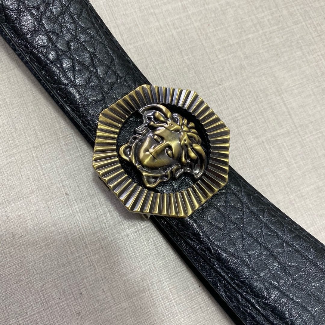Versace Classic Circular Buckle Black Texture Belt Classic Fashion Exquisite Elegance