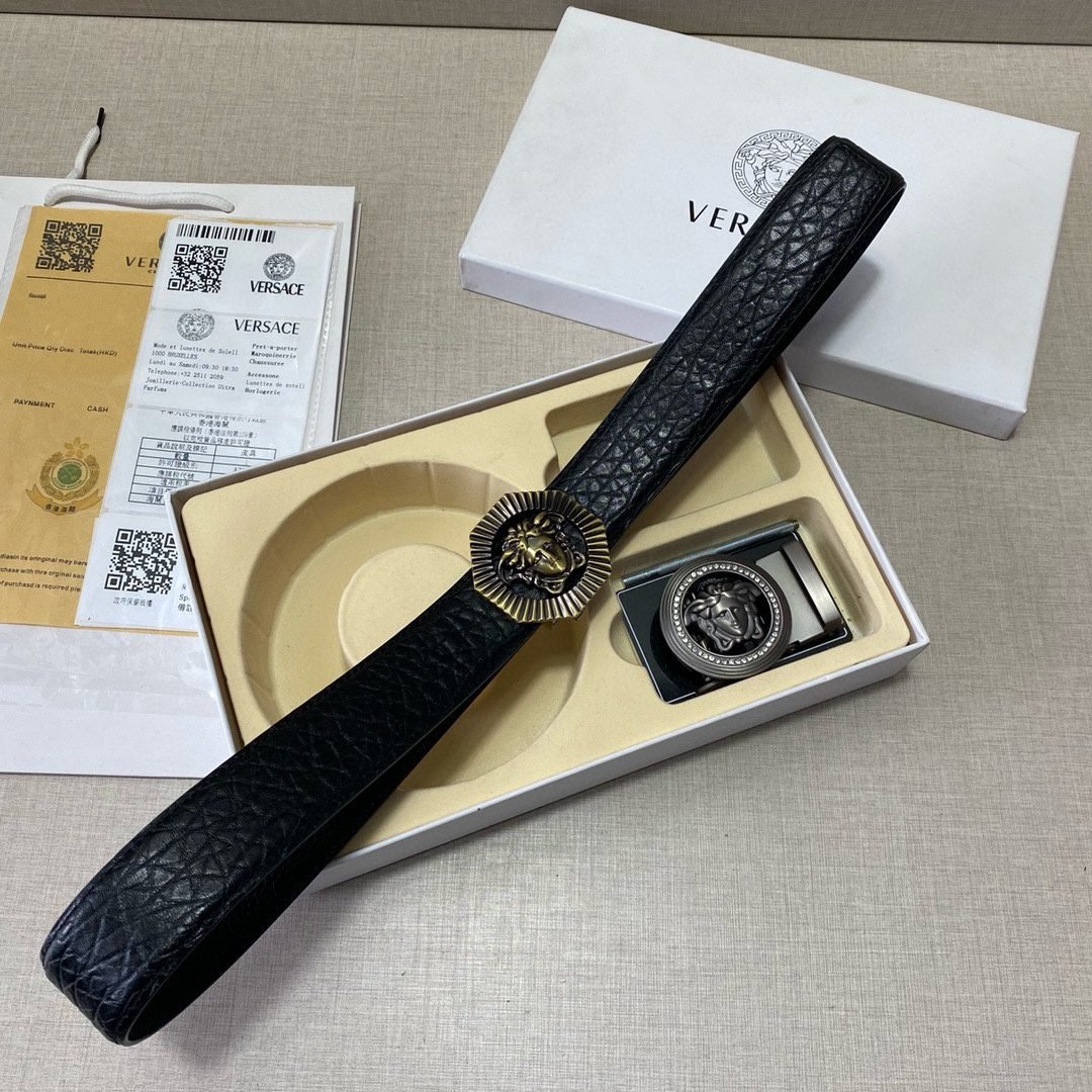 Home Belt VERSACE Belt Versace Classic Double Button Round Buckle Belt Gift Box Set, High end Fashion, Noble and Elegant