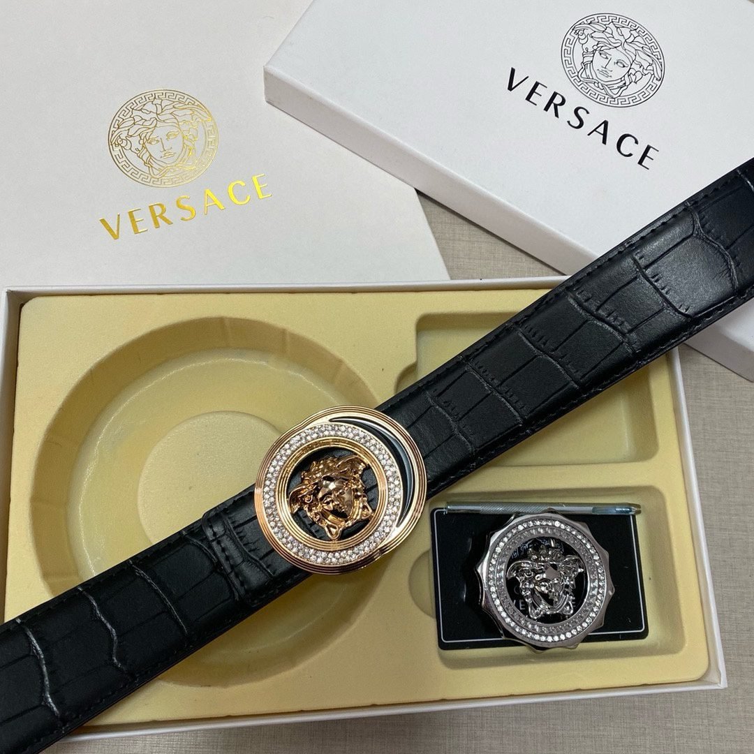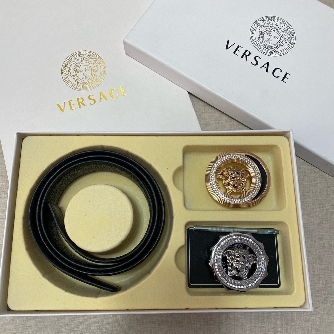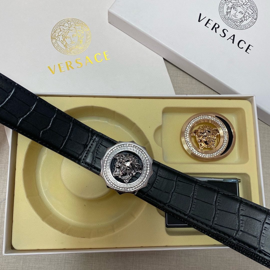 Versace Classic Double Button Round Buckle Belt Gift Box Set, High end Fashion, Noble and Elegant