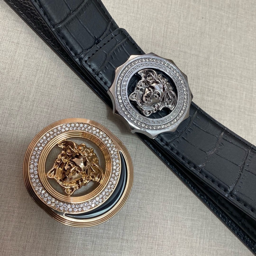 Home Belt VERSACE Belt Versace Classic Double Button Round Buckle Belt Gift Box Set, High end Fashion, Noble and Elegant