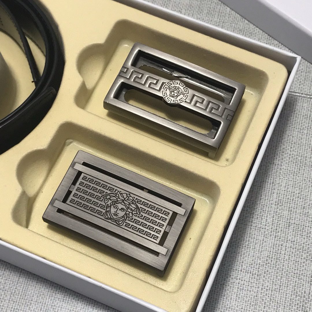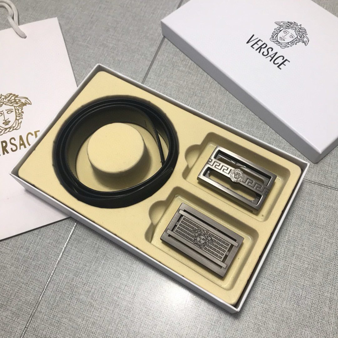 Versace Classic Double Button Round Buckle Belt Gift Box Set, High end Fashion, Noble and Elegant