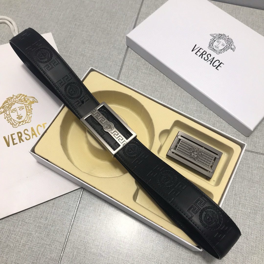 Home Belt VERSACE Belt Versace Classic Double Button Round Buckle Belt Gift Box Set, High end Fashion, Noble and Elegant