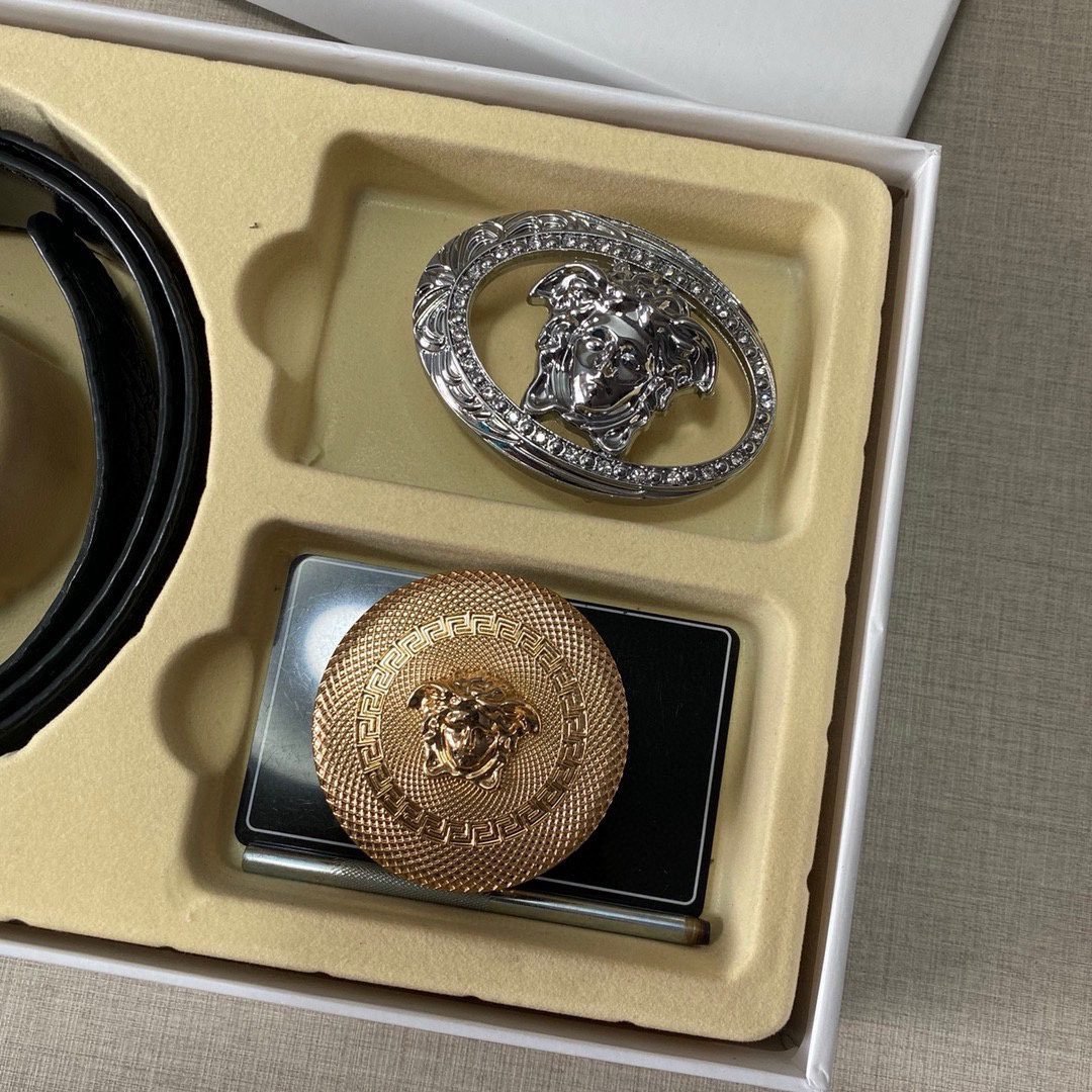 Versace Classic Double Button Round Buckle Belt Gift Box Set, High end Fashion, Noble and Elegant
