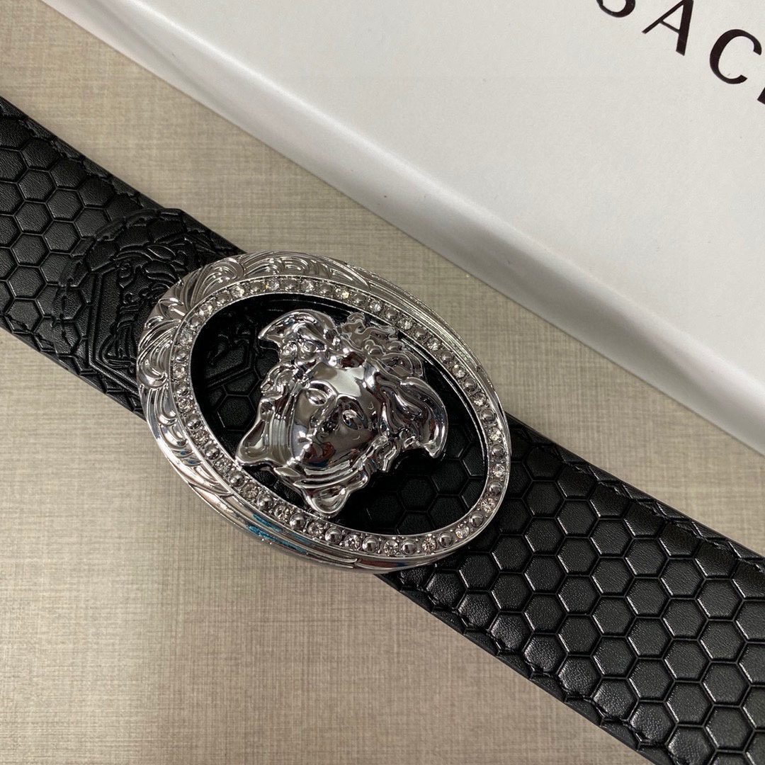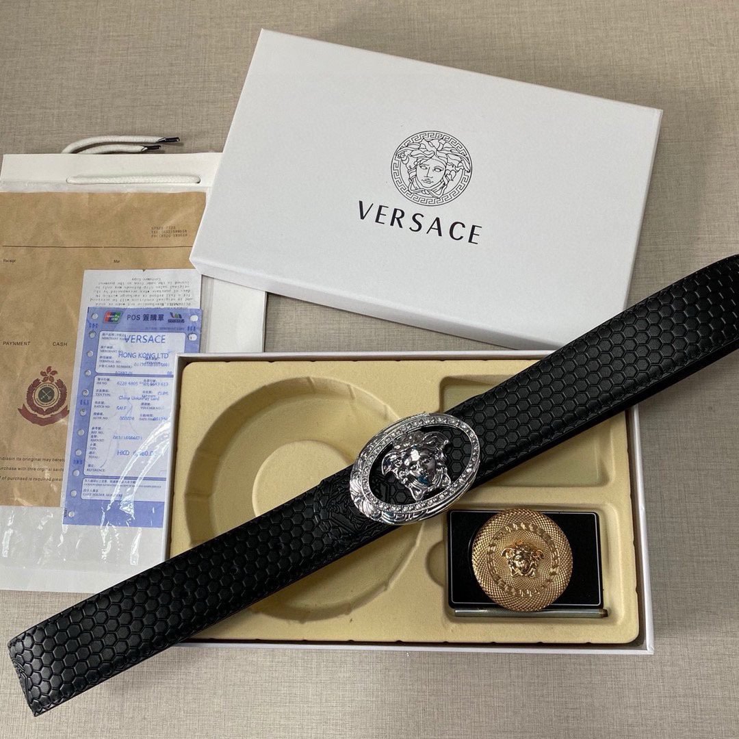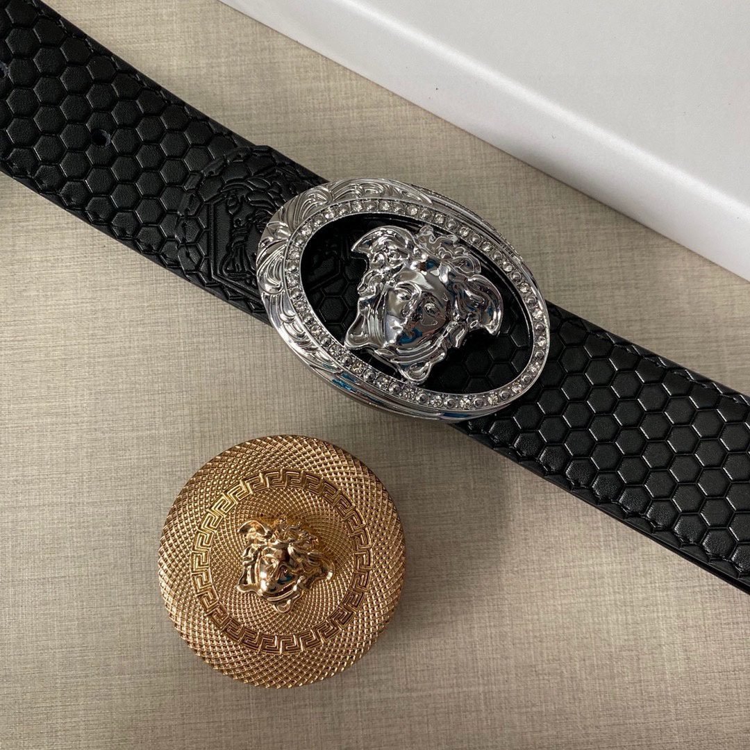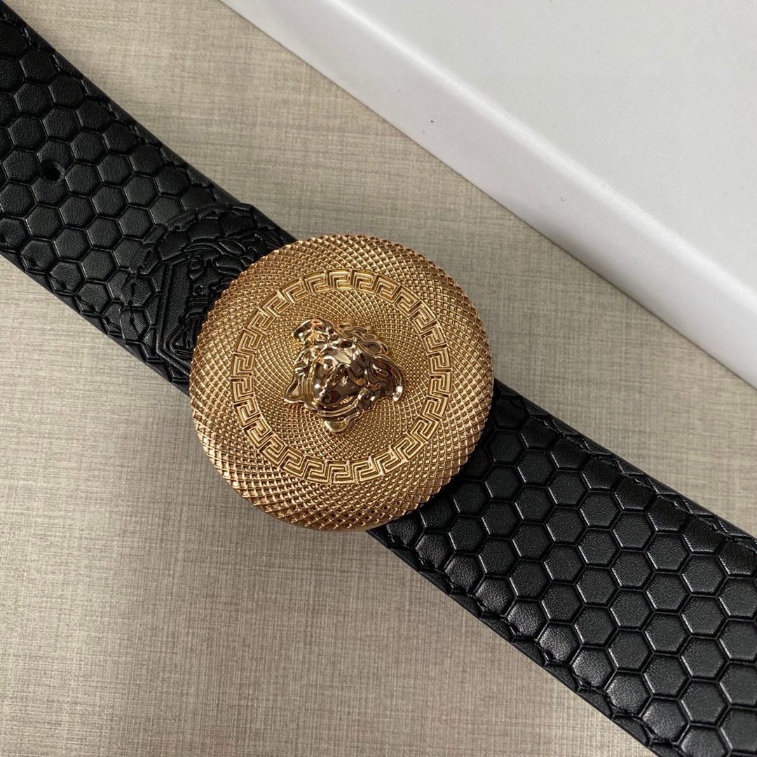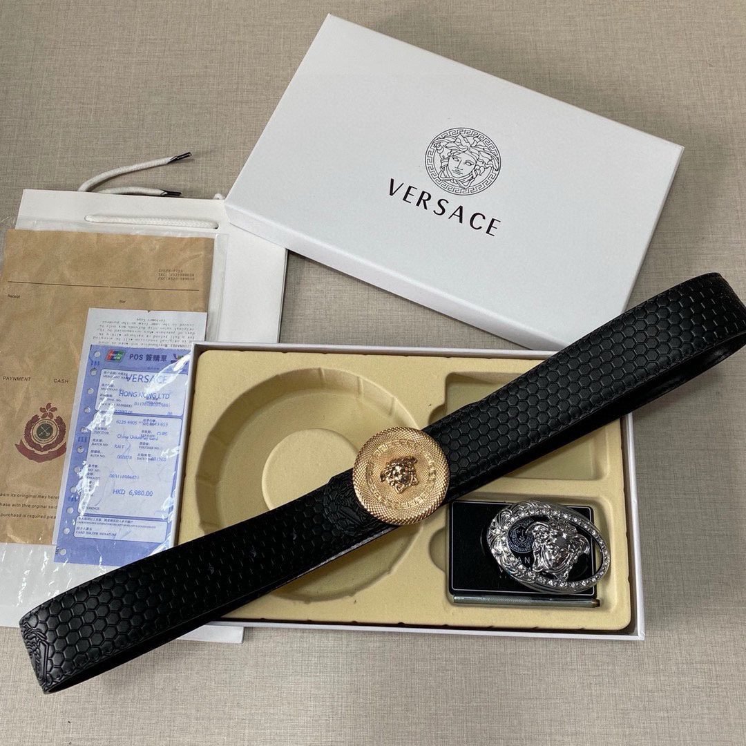 Home Belt VERSACE Belt Versace Classic Double Button Round Buckle Belt Gift Box Set, High end Fashion, Noble and Elegant
