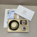 Versace Classic Double Button Round Buckle Belt Gift Box Set, High end Fashion, Noble and Elegant