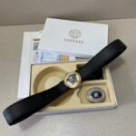 Versace square buckle black textured belt, simple and elegant, low-key and luxurious $210.00 Original price was: $210.00.$66.69Current price is: $66.69.