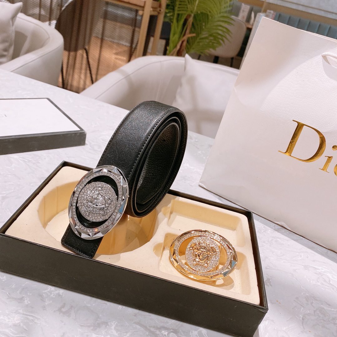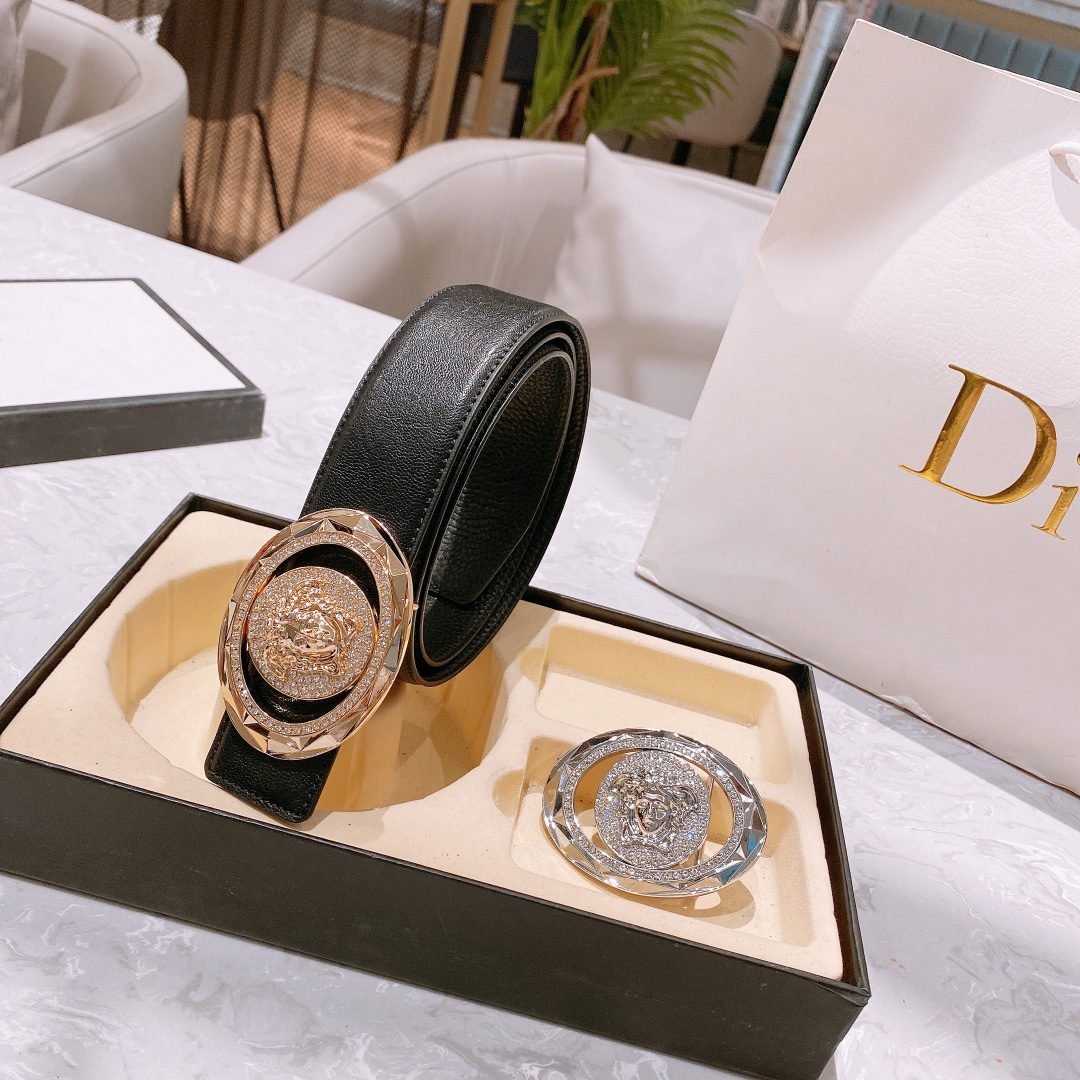Versace Classic Double Button Round Buckle Belt Gift Box Set, High end Fashion, Noble and Elegant