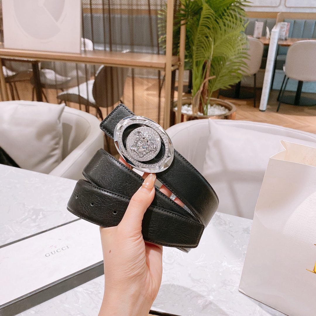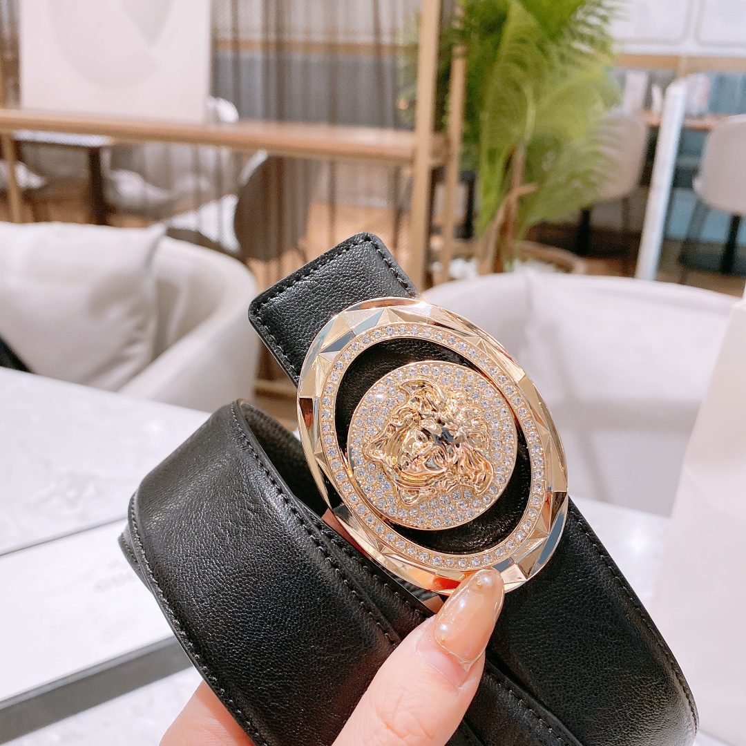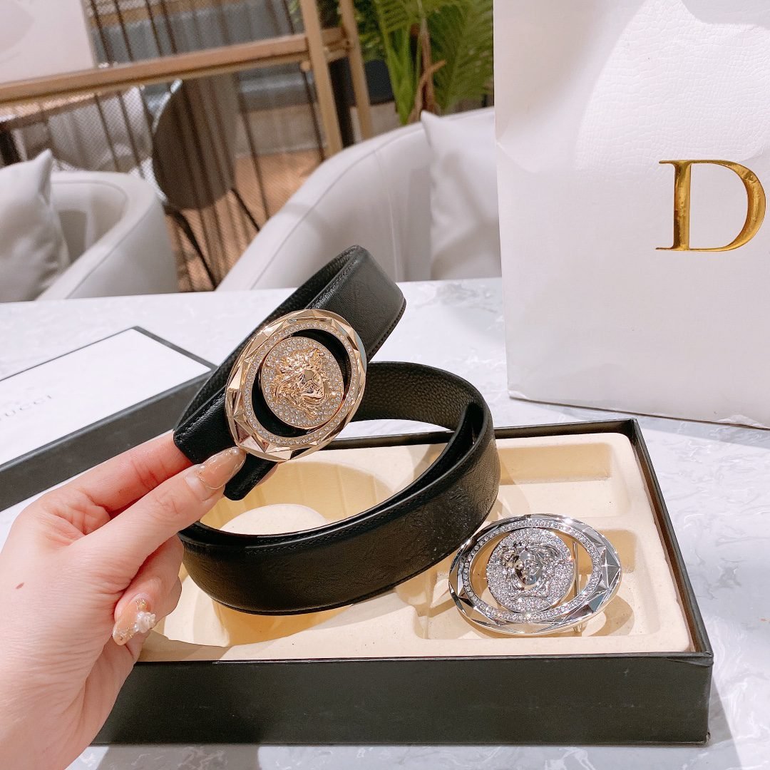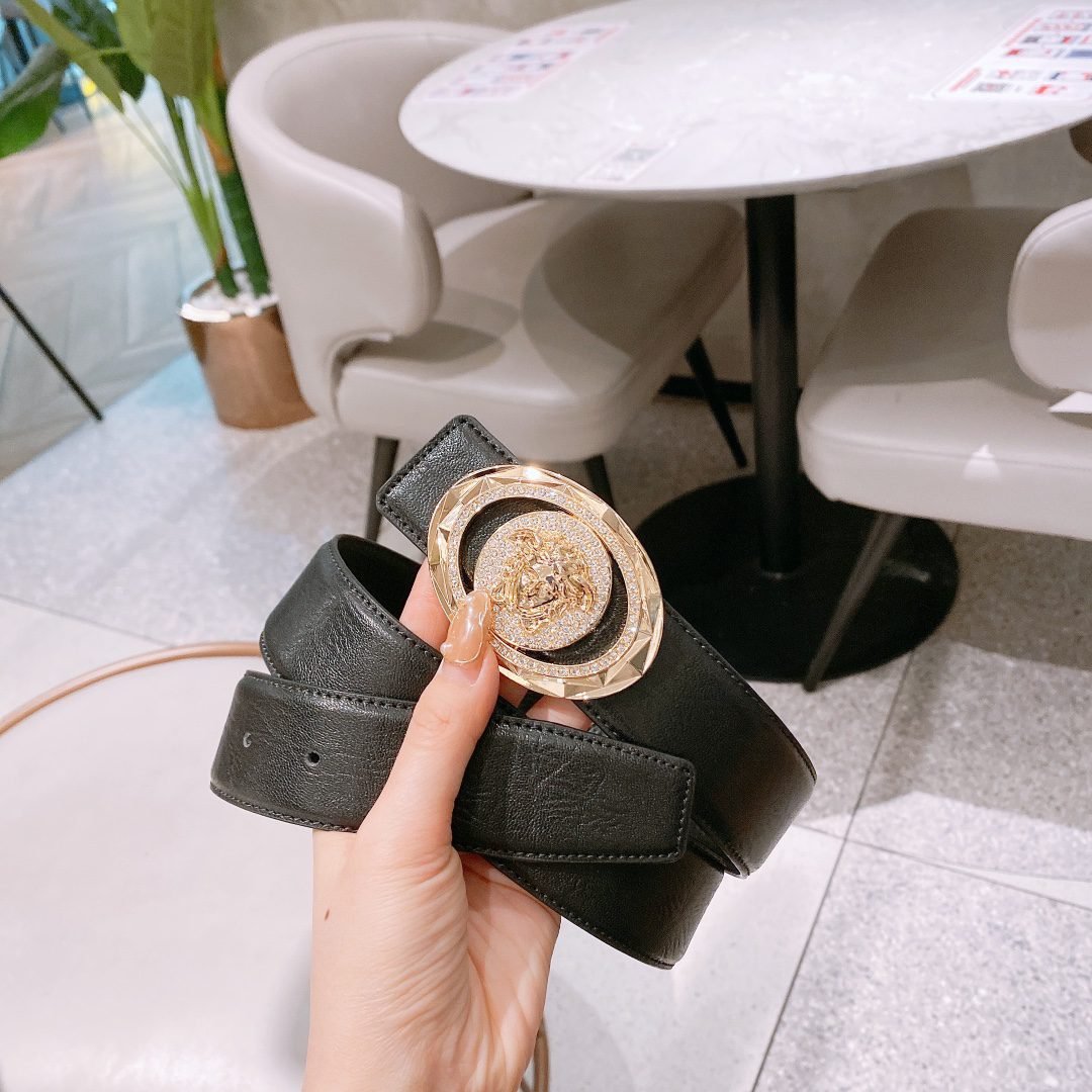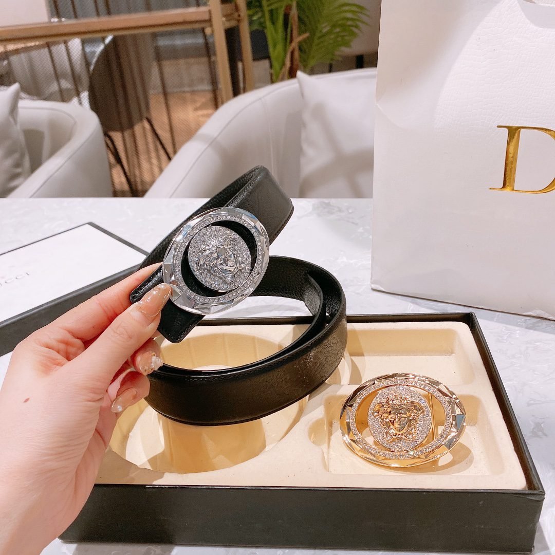 Home Belt VERSACE Belt Versace Classic Double Button Round Buckle Belt Gift Box Set, High end Fashion, Noble and Elegant