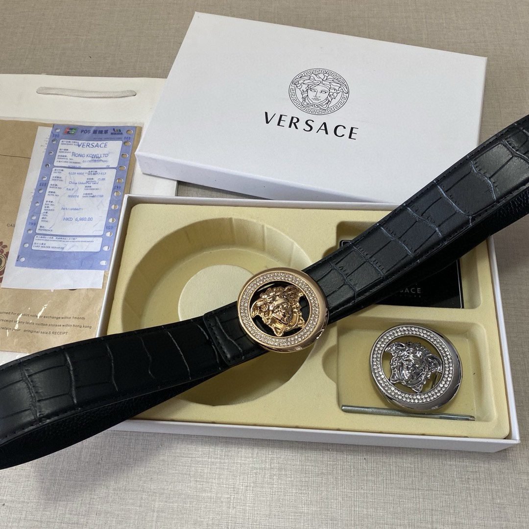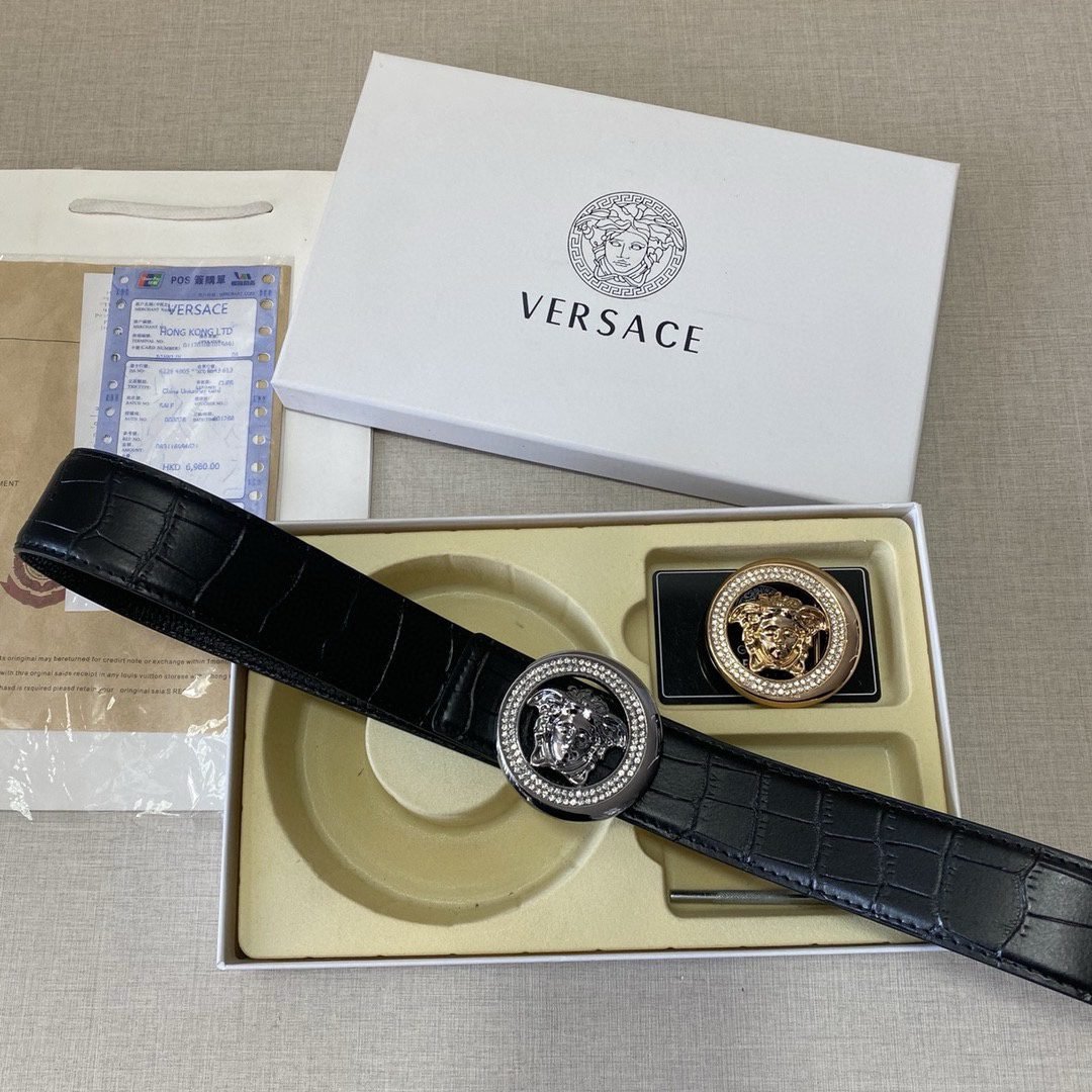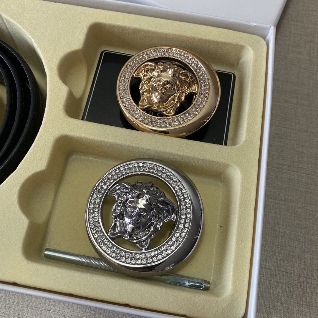 Versace Classic Double Button Round Buckle Belt Gift Box Set, High end Fashion, Noble and Elegant