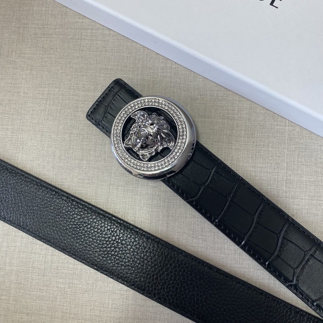Home Belt VERSACE Belt Versace Classic Double Button Round Buckle Belt Gift Box Set, High end Fashion, Noble and Elegant