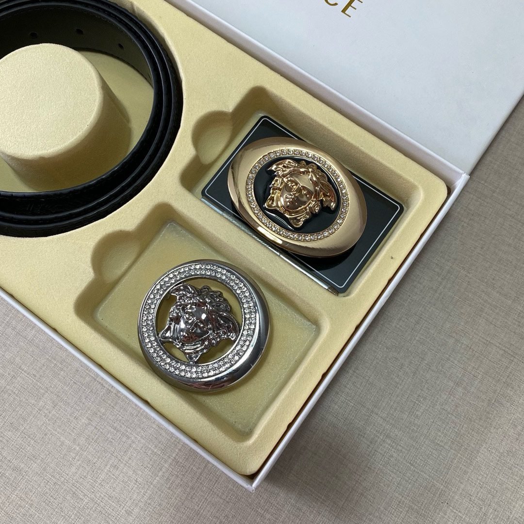 Versace Classic Double Button Round Buckle Belt Gift Box Set, High end Fashion, Noble and Elegant