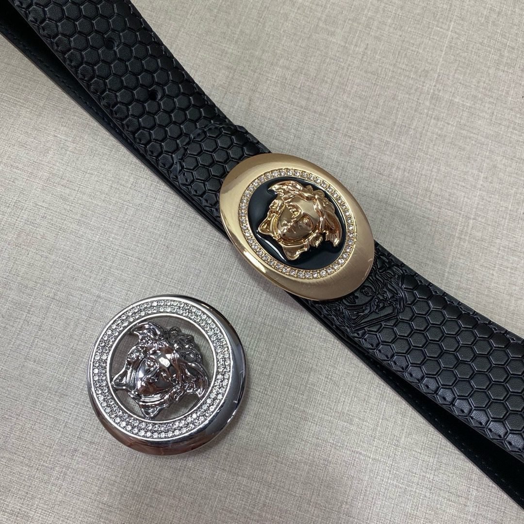 Home Belt VERSACE Belt Versace Classic Double Button Round Buckle Belt Gift Box Set, High end Fashion, Noble and Elegant