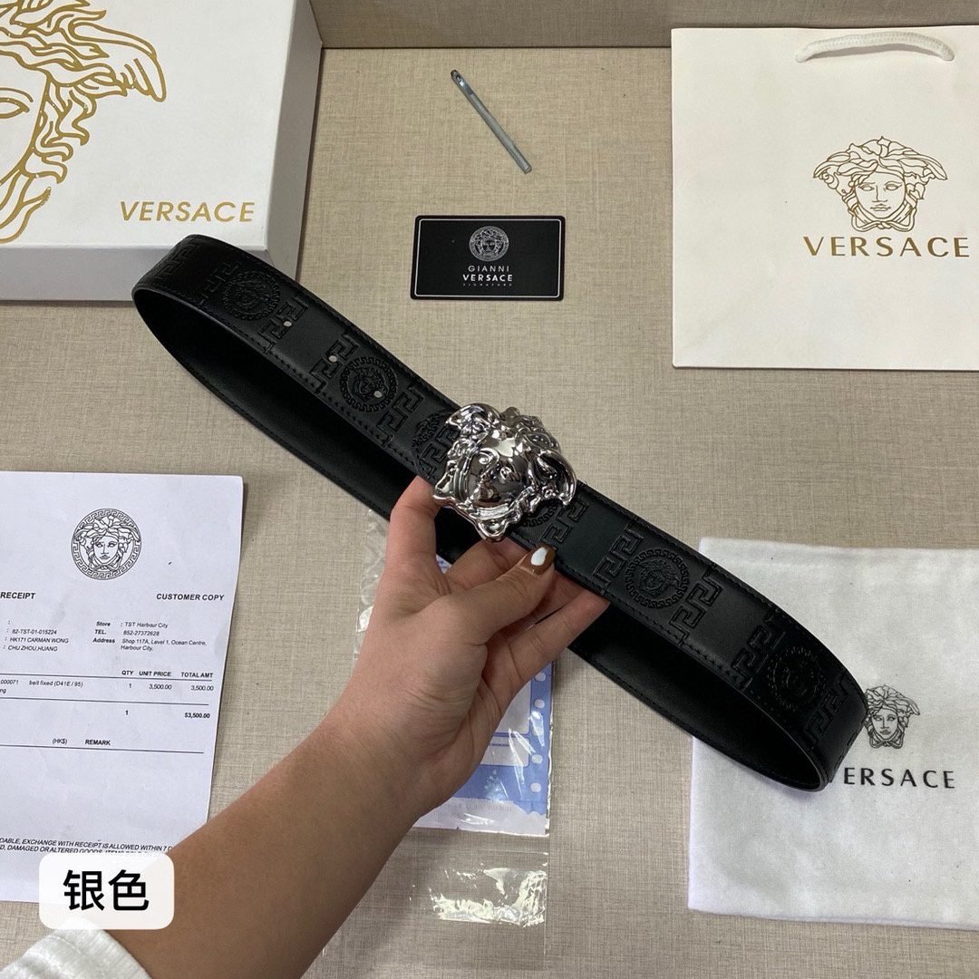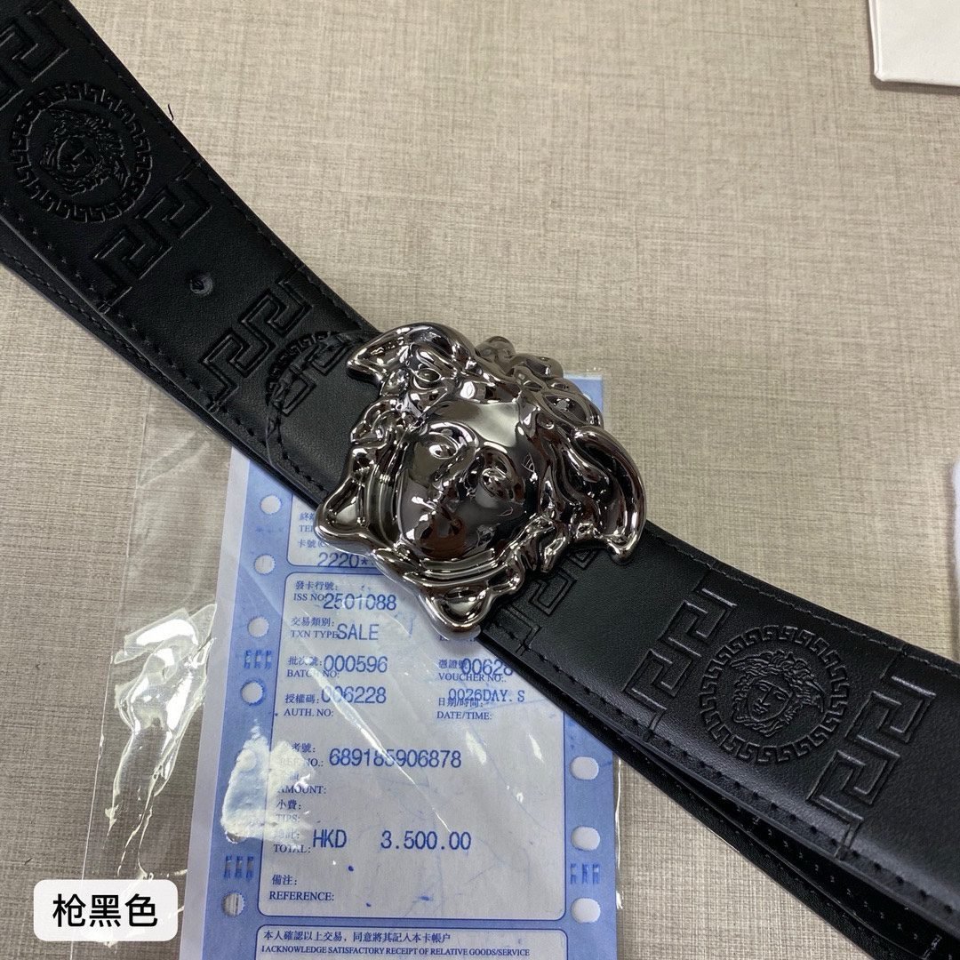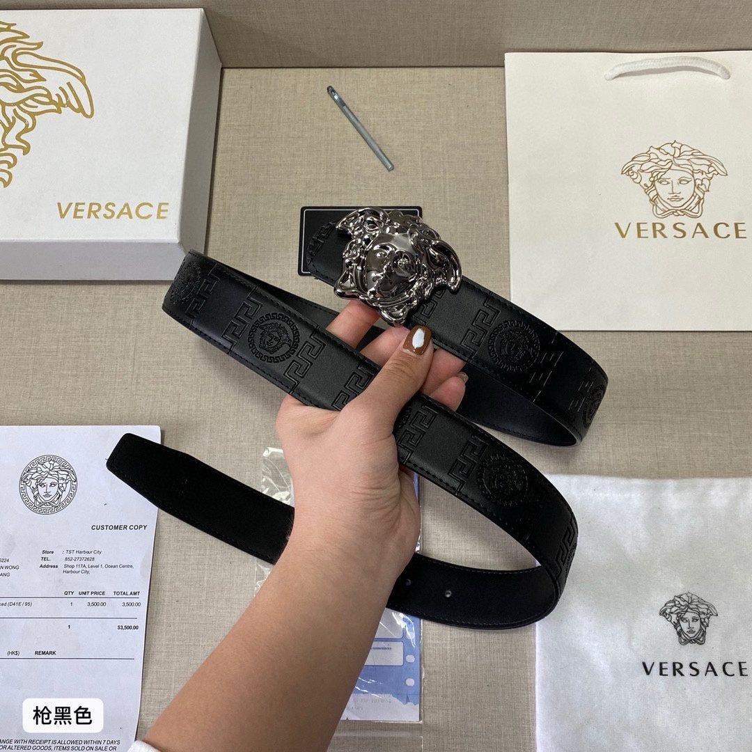 Home Belt VERSACE Belt Versace Classic Medusa Relief Buckle with Black Texture Belt, Simple, Atmospheric, Exquisite, Elegant