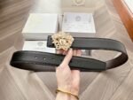 Versace Classic Medusa Relief Ring Buckle Black Belt Classic Fashion Noble Elegance