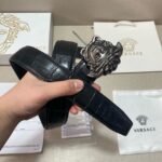 Be the first to review “Versace Classic Medusa Relief Ring Buckle Black Crocodile Pattern Belt Simple and Elegant, Low key Luxury” Cancel reply