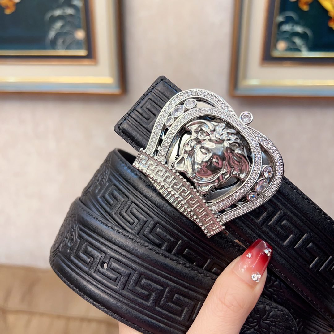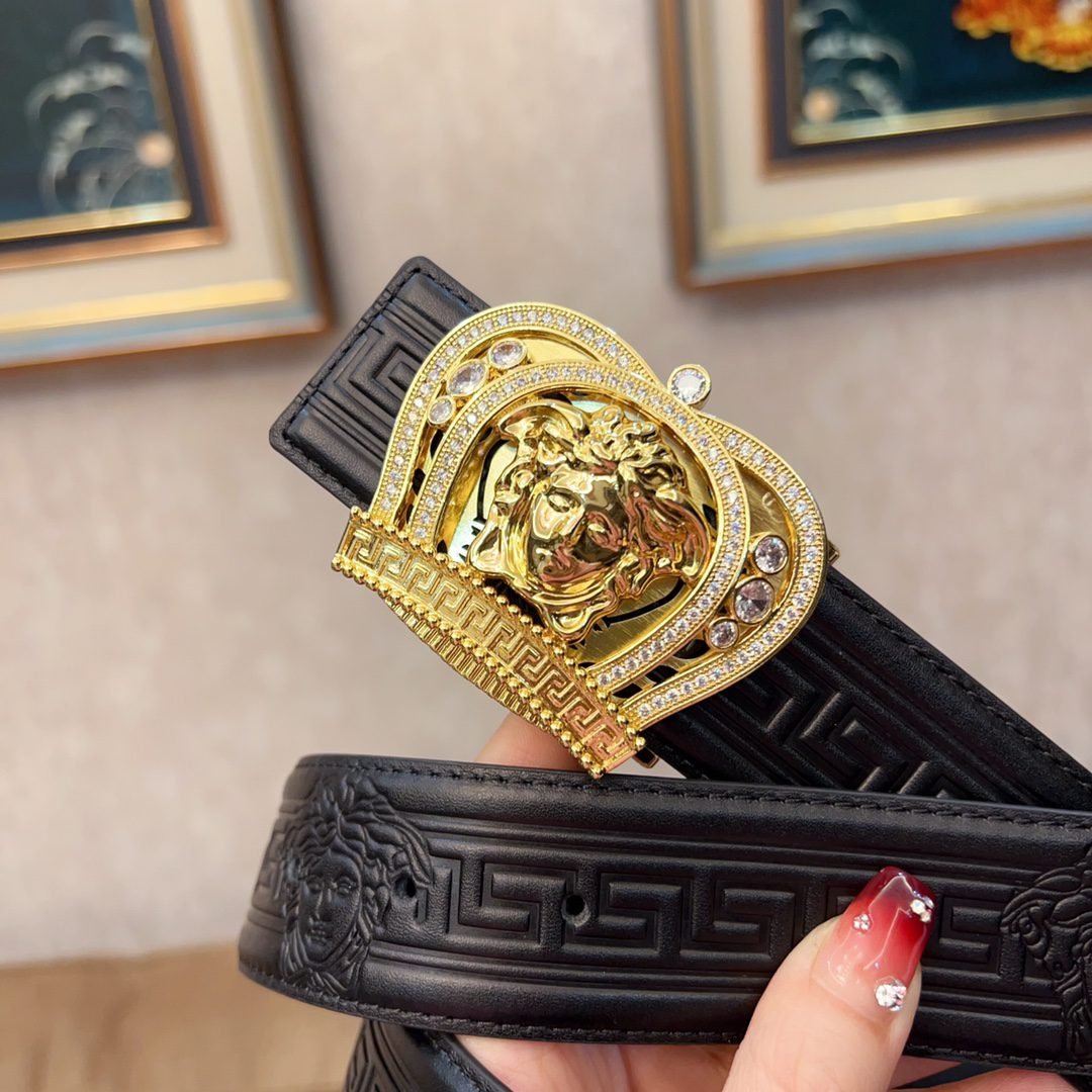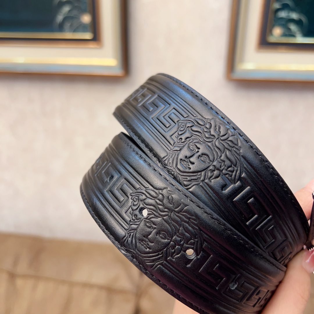 Home Belt VERSACE Belt Versace Classic Medusa Relief Ring Buckle Black Texture Belt Simple Fashion Noble Luxury