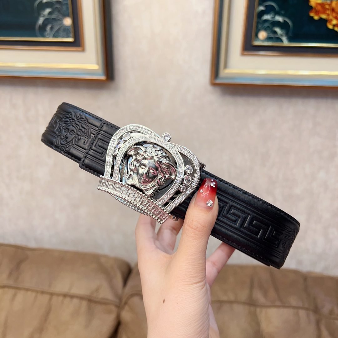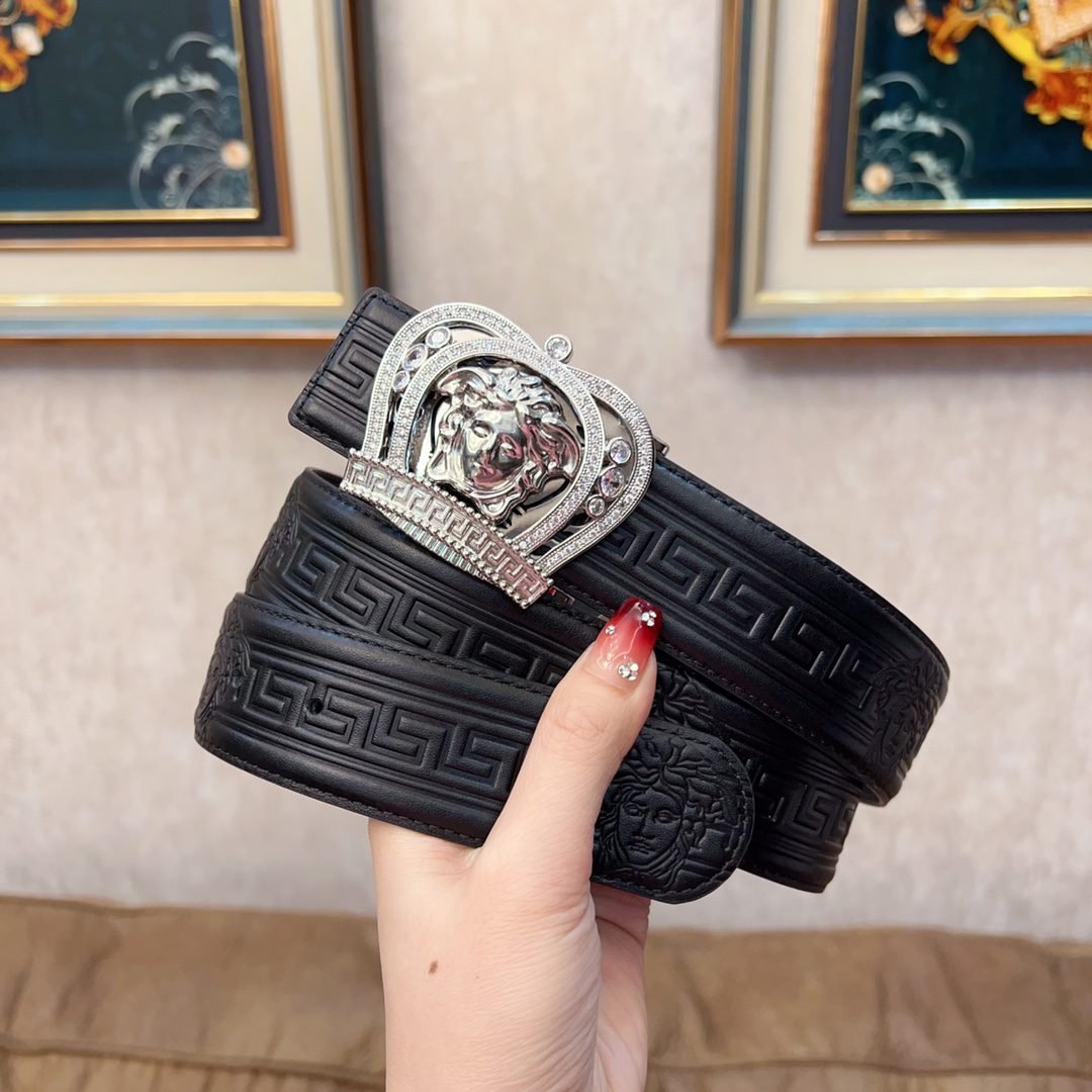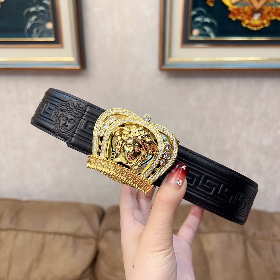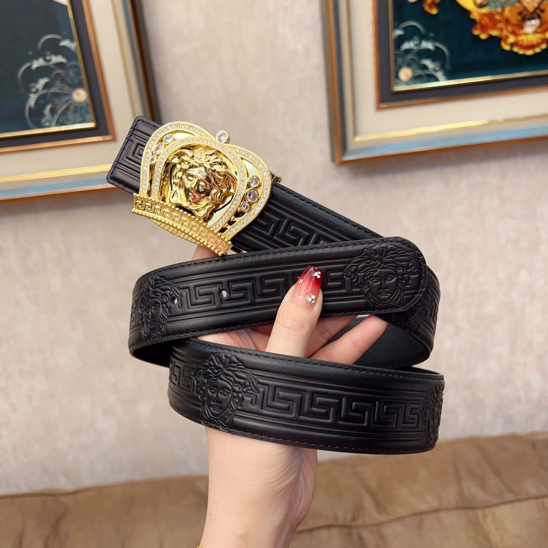 Home Belt VERSACE Belt Versace Classic Medusa Relief Ring Buckle Black Texture Belt Simple Fashion Noble Luxury
