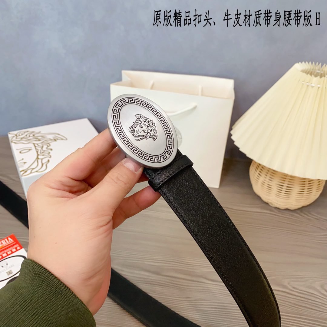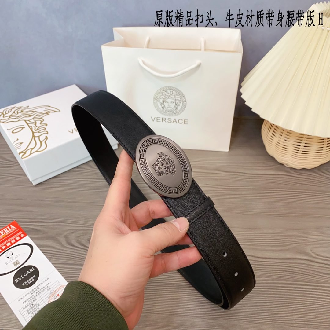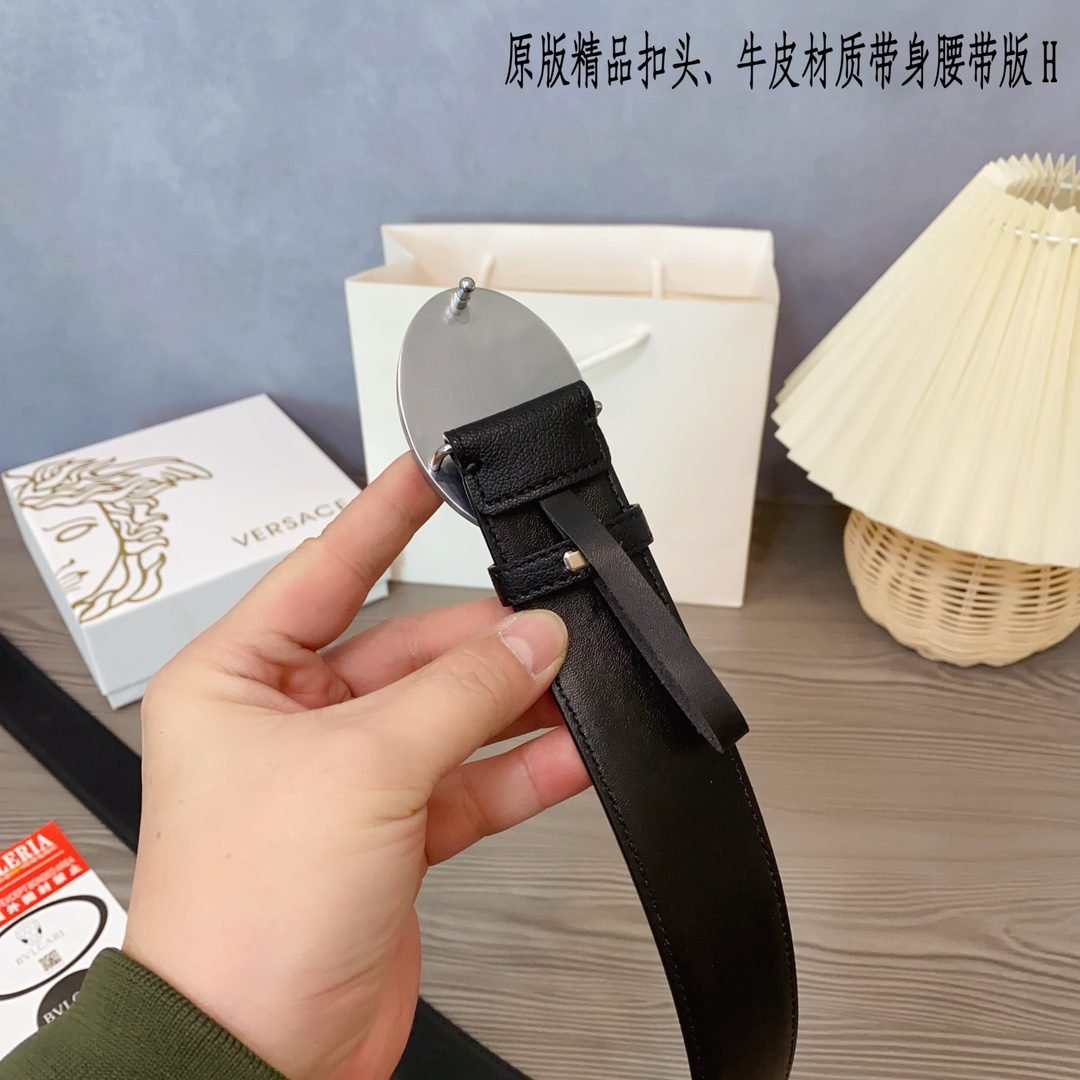 Home Belt VERSACE Belt Versace Classic Round Buckle Black Belt Simple, Elegant, Exquisite, and Elegant