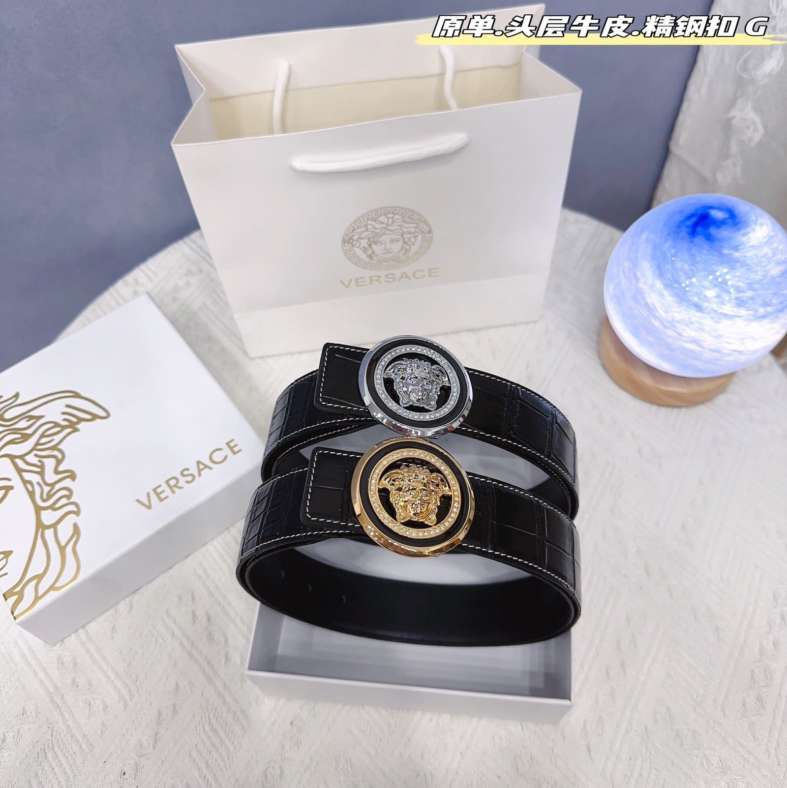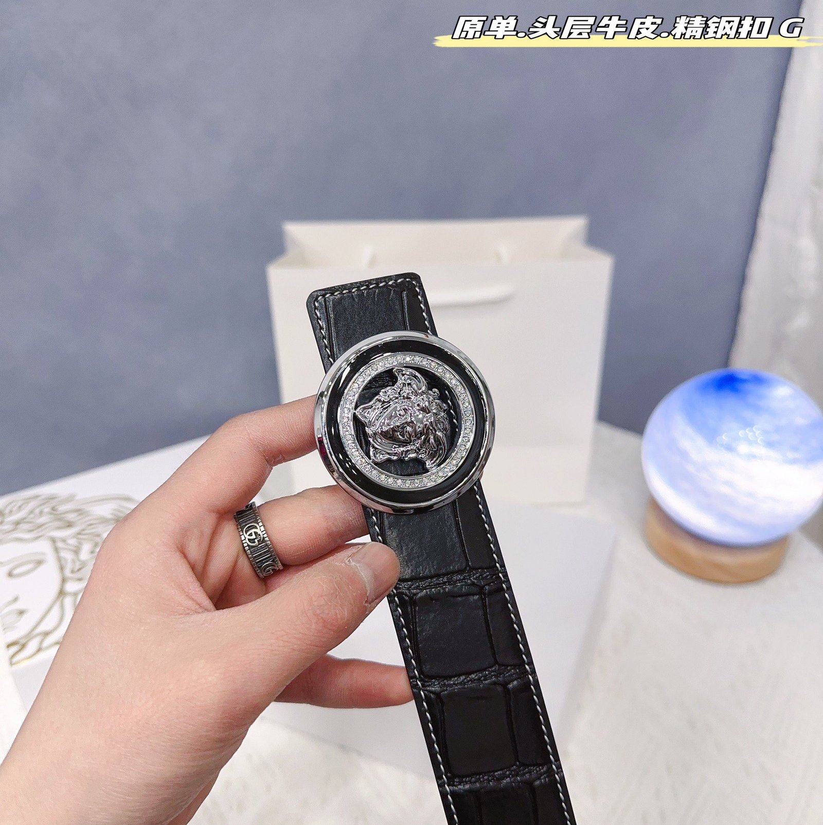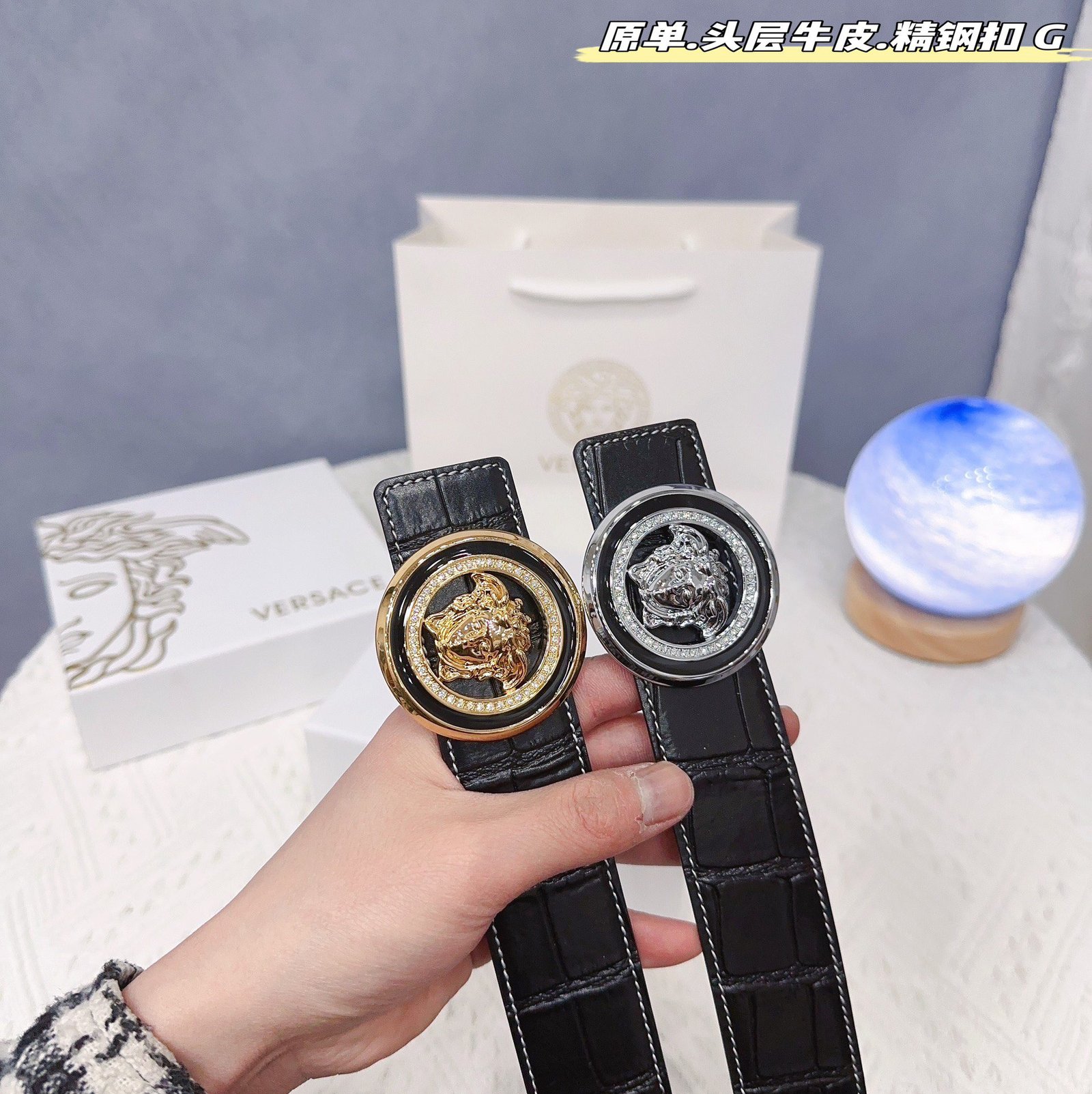 Versace Classic Double Button Round Buckle Belt Gift Box Set, High end Fashion, Noble and Elegant